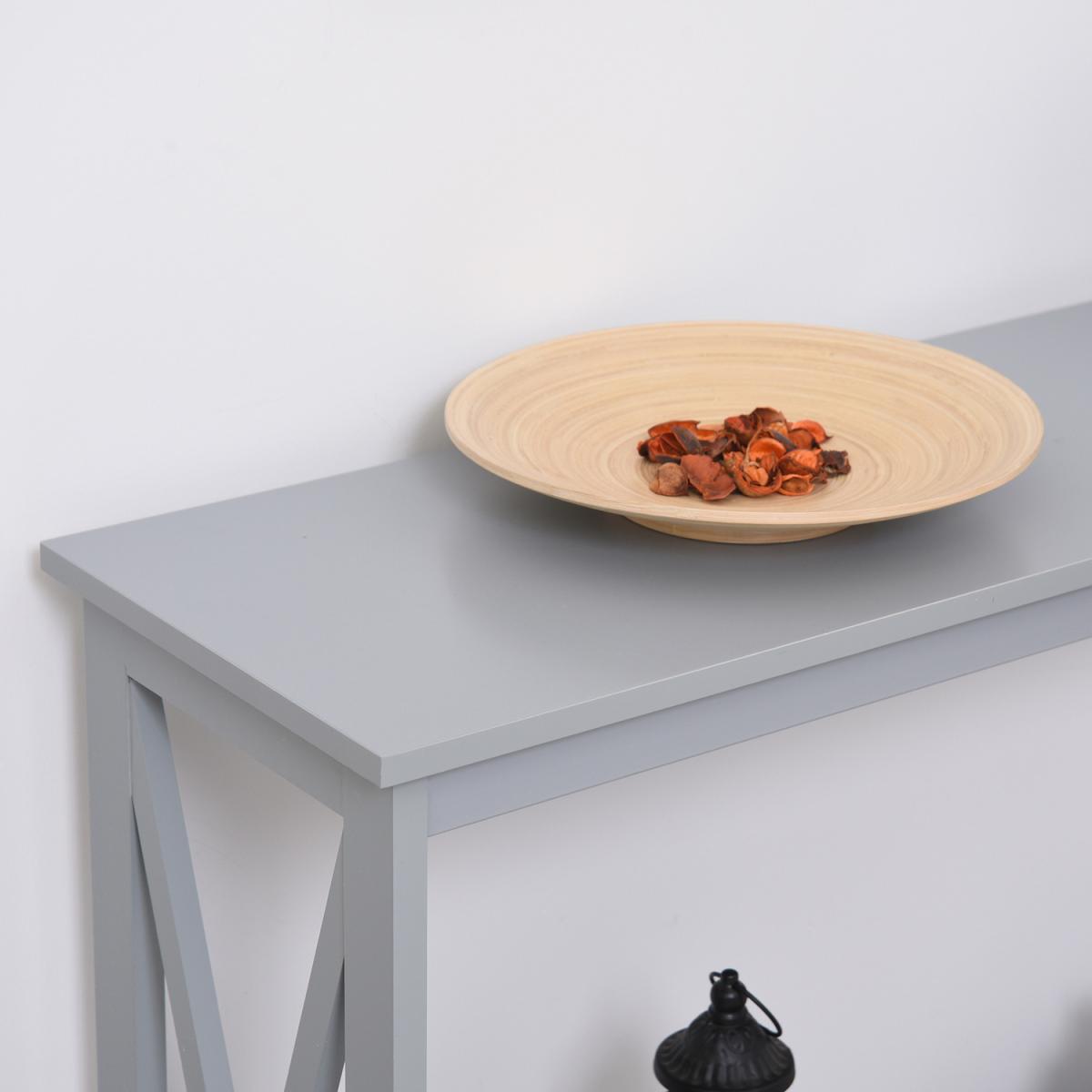 This HOMCOM console table with simple grey and no other patterns can surely match to different kinds style of your furniture and better reflects your personal style! It works great as a console table, entry way table, display table, etc. Easy to complement to your home decor and highlight taste. Made of P2 certified MDF board to ensure long-lasting use. The X structures on both sides offers fashion sense and extra stability.