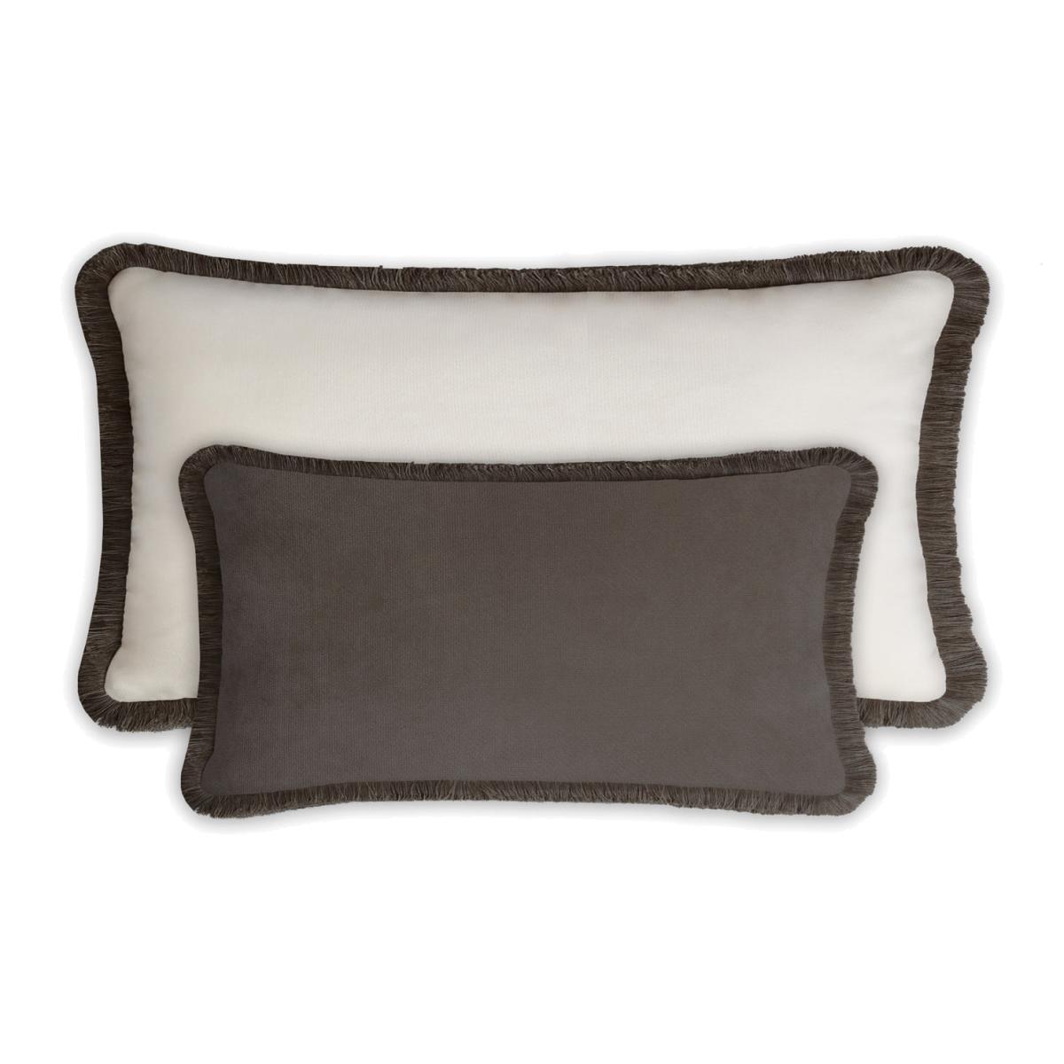 Grey Couple Happy Pillow Rectangle Carbon And White Velvet With Fringes Lo Decor