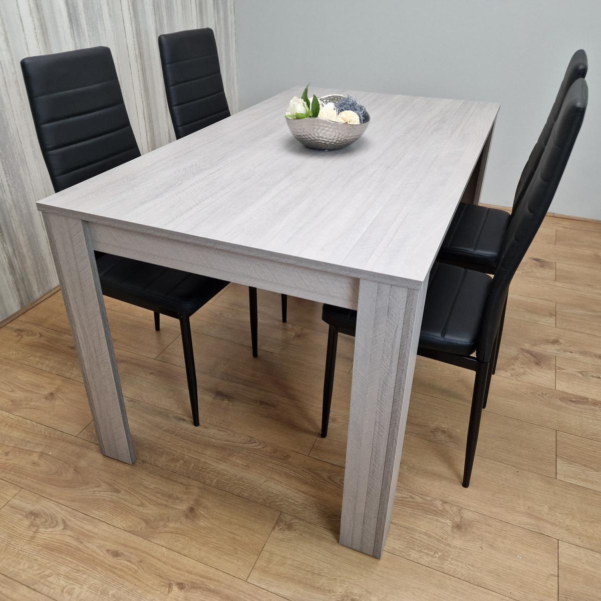 Enhance your dining area with our stylish Dining Set. Crafted from high-quality MDF in grey, this set effortlessly combines aesthetics and practicality. The dining table features a sleek grey tabletop with Arrow effect, making it a versatile addition to your dining space. Whether it's a family meal or a casual get-together, this table provides a solid foundation for your dining needs. Included in the set are four matching Black Chairs upholstered in faux leather for a touch of sophistication and easy cleaning. The chairs rest on sturdy metal legs with great strength and durability with adjustable foot protection, ensuring stability on various floor surfaces. This practical feature ensures that your dining experience is comfortable and wobble-free, the chairs seats and back rest are extra padded cushioned for extra comfort when you sit on. This dining set is conveniently shipped in a flat-pack format, allowing for straightforward assembly upon arrival. Easy-to-follow instructions ensure a hassle-free setup, so you can start enjoying your new dining set in no time. Our service offers fast and free delivery, along with a one-year warranty that covers the replacement of any faulty or broken parts during your use of the table.