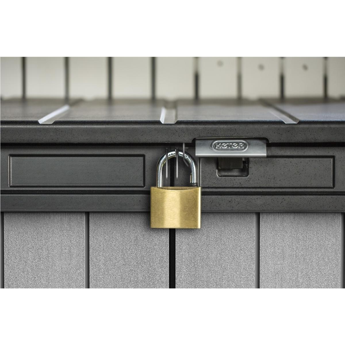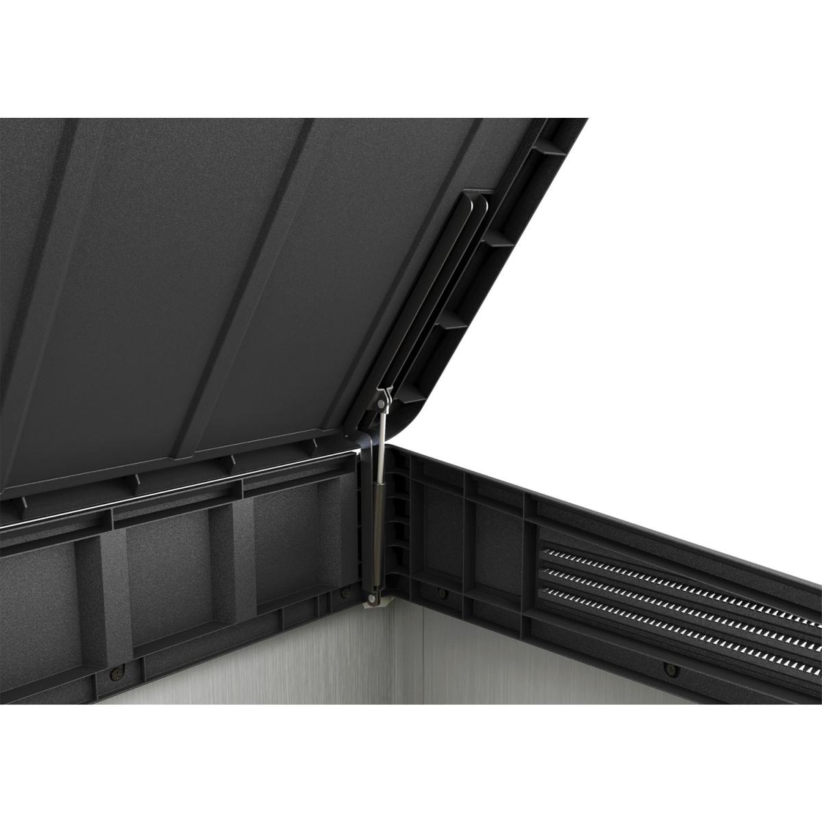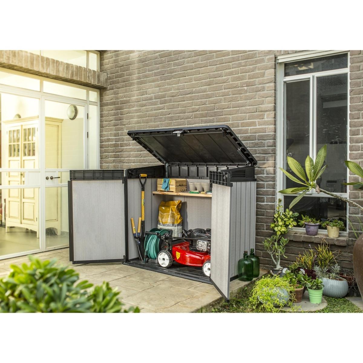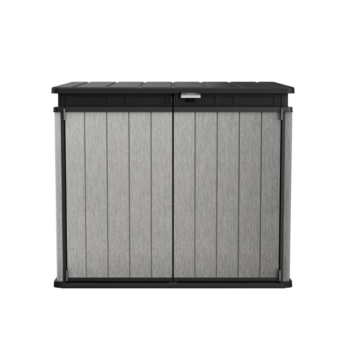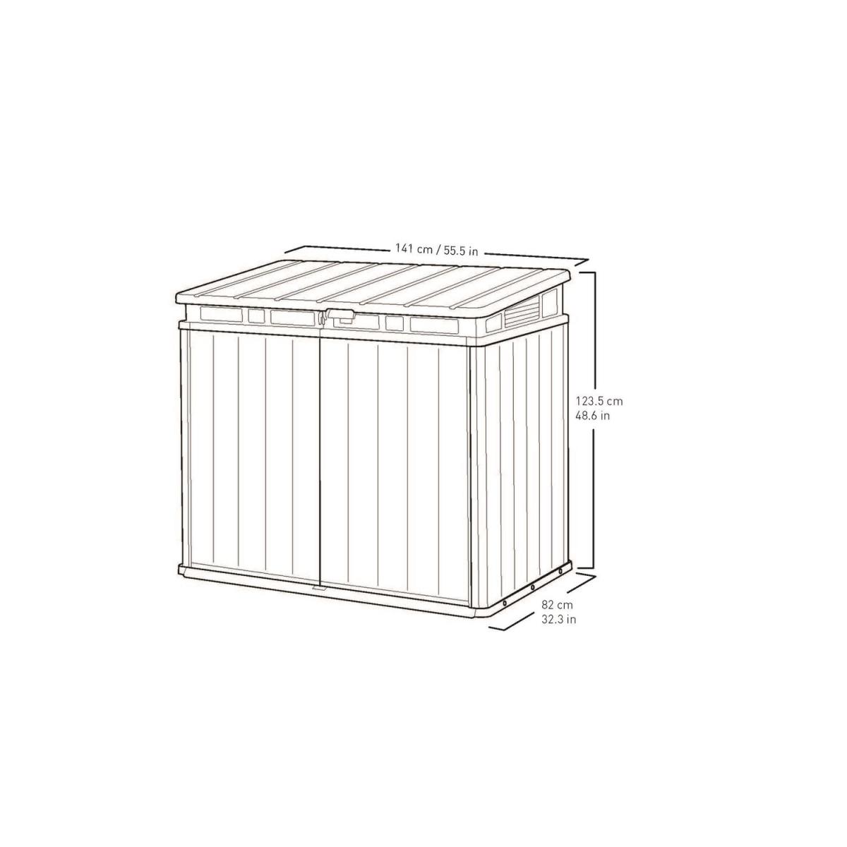 Dimensions H123.5m x W141cm x D82cm Premium storage box made from DuotechT M with a brushed grey finish. Completely maintenance free this storage box is weather resistant and fade free. Simple and straightforward to assemble and fully lockable. Features. Contrasting grey design. Large enclosed storage area. Lockable storage section. Maintenance free. Weather resistant and fade free Assembly required..