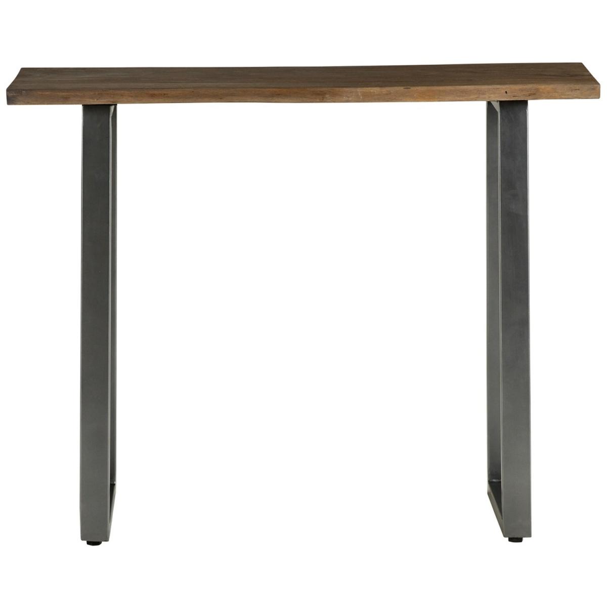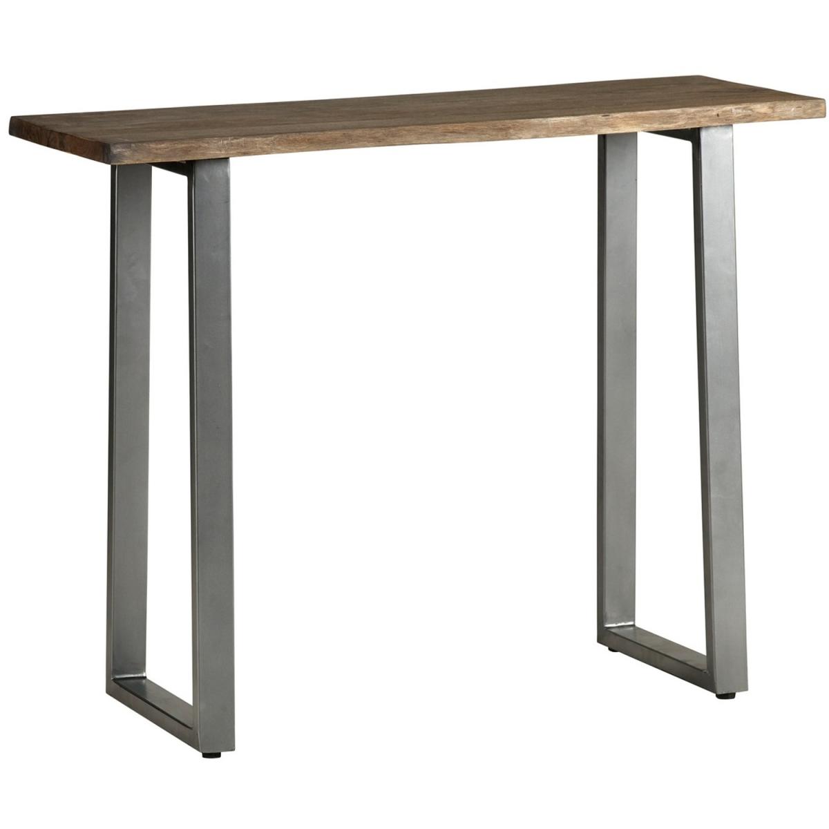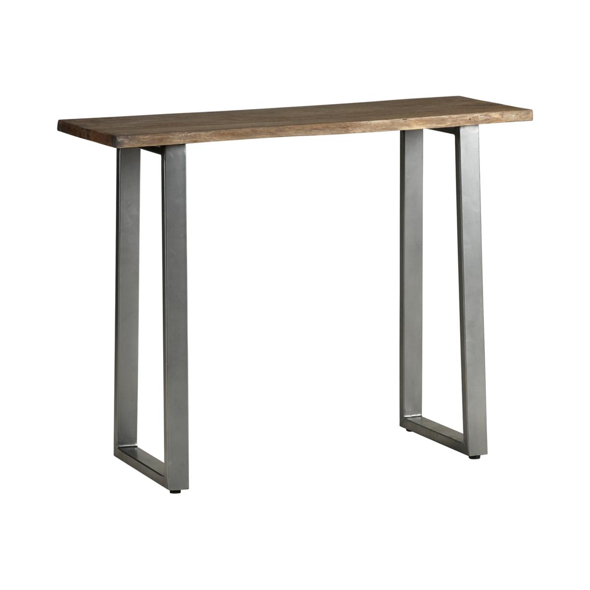 Rectangular shaped, with a natural live edge, this lovely console table is Handcrafted from sustainable sourced solid Acacia Wood. A beautiful handcrafted console table that will add character to your hallway. The piece comes lightly stained in a grey, matte finish, with a solid metal base. The uniqueness of this range is given by the variations in the wood, together with the natural knots and slight cracks which are part of its character.