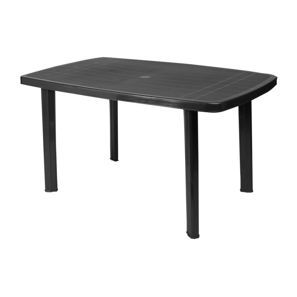 The Grey Faro Table is a simple and convenient addition to your garden furniture. The table is made from sturdy plastic and features a handy section in the middle for your parasol, helping to keep you cool and your skin protected from the sun. The sleek design and dark grey colouring are perfect for a variety of garden and patio decors, helping to keep your space looking cohesive.