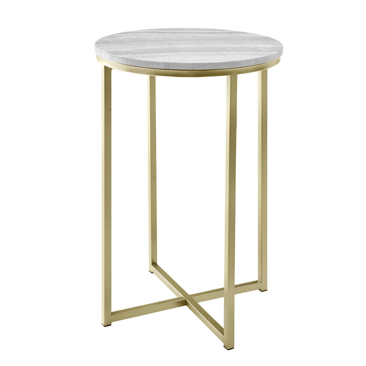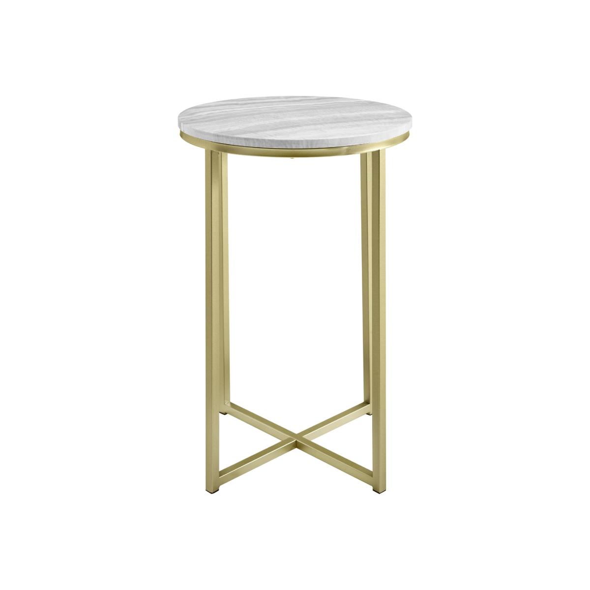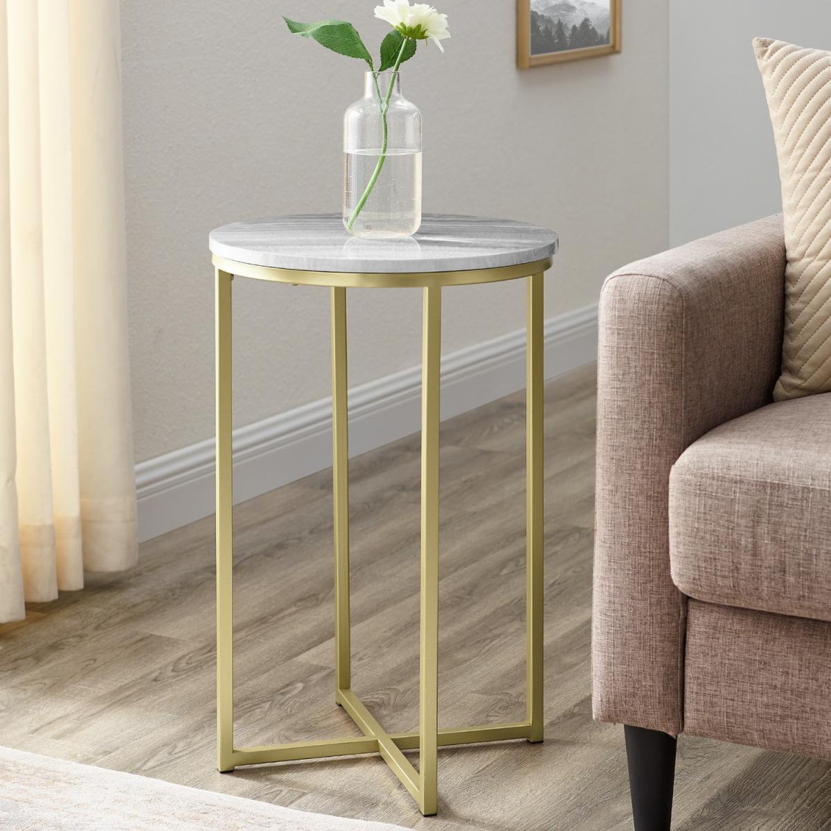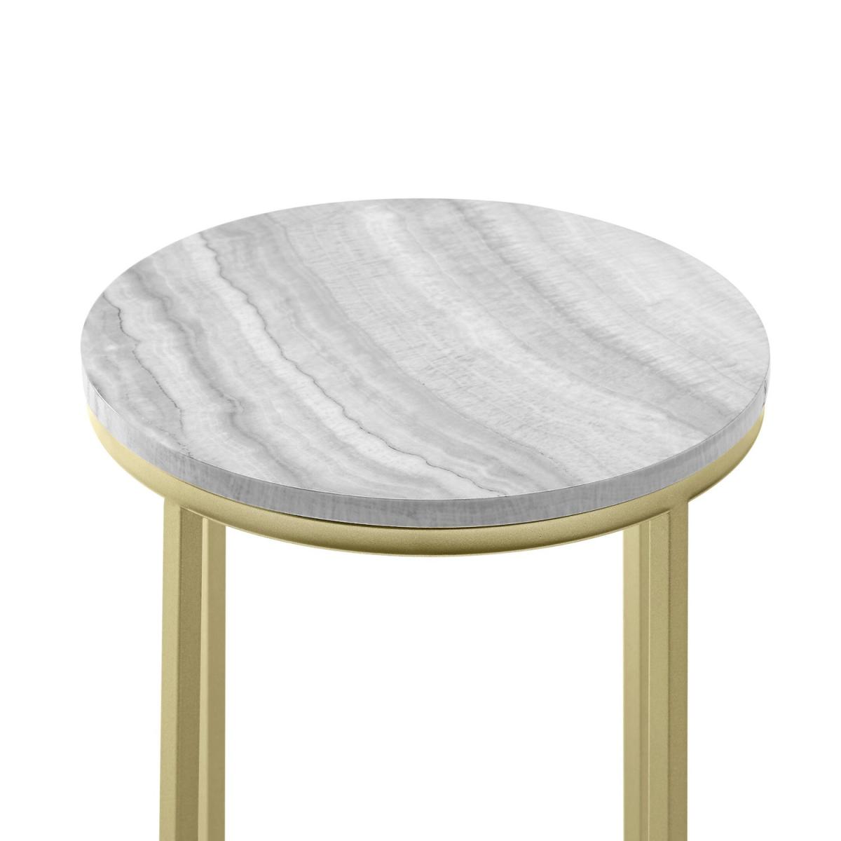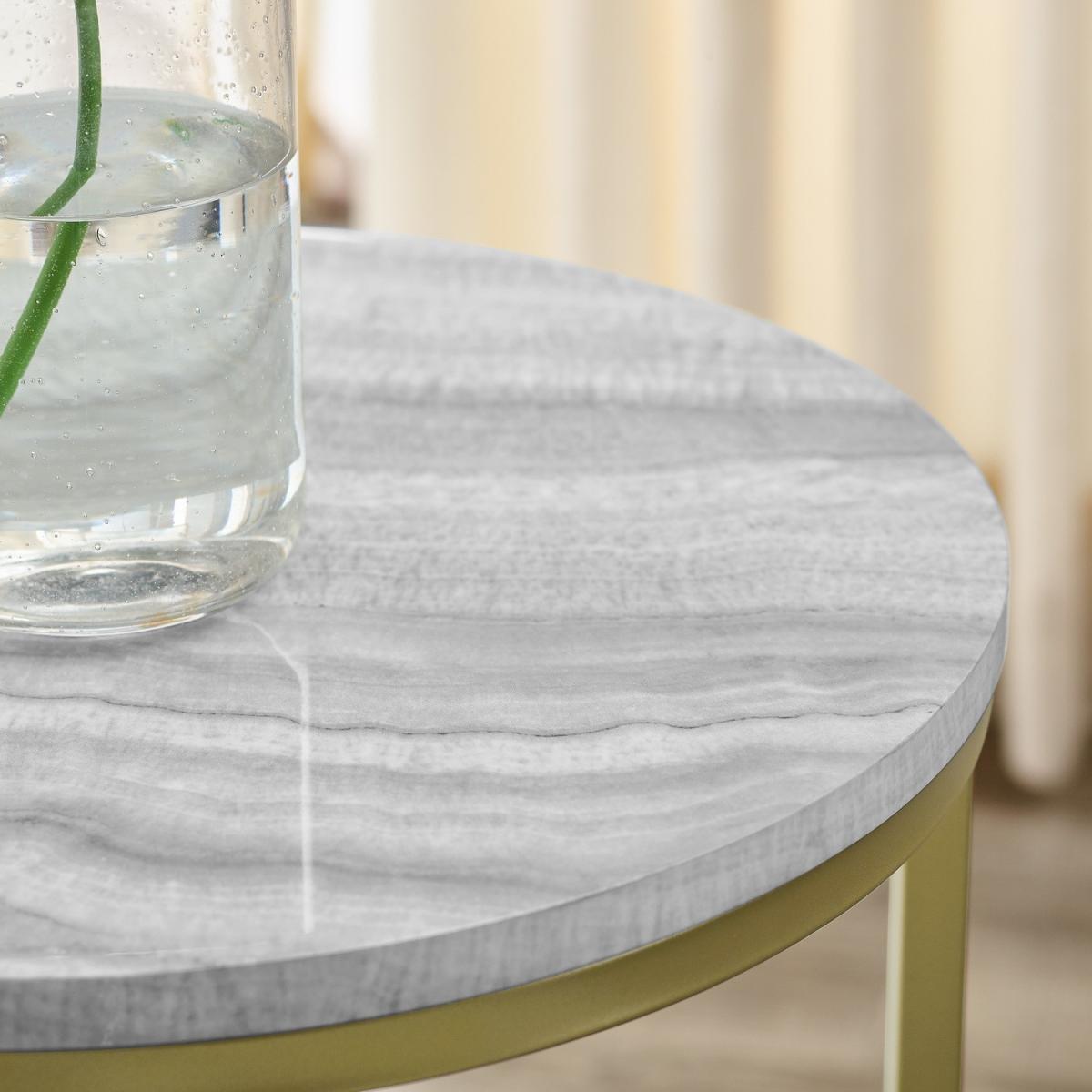 Dimensions H120 x W100 x D100 cm. Revitalise your living room with this stylish modern side table. Tapping into trends for stone tops it comes in a sliced agate or grey vein cut marble finish coated with UV gloss to provide a realistic and moisture-resistant surface for happy hour at home. The perfect companion to your luxe interior the gold metal accents add a touch of effortless glam. Its small dimensions make it ideal for squeezing into small spaces (like next to your sofa in the living room) or next to your bed as a striking contemporary bedside table. The crossed base provides extra stability for your lamps or other living room essentials and rubber capped feet keep the piece from sliding or scratching your floor. Features. Modern glam side table Faux agate or marble finishes. Painted metal X-legs. Rubber capped feet to protect flooring and prevent slidingUV gloss coating for a polished moisture-resistant finish. Made from warp-resistant MDF and durable laminate..