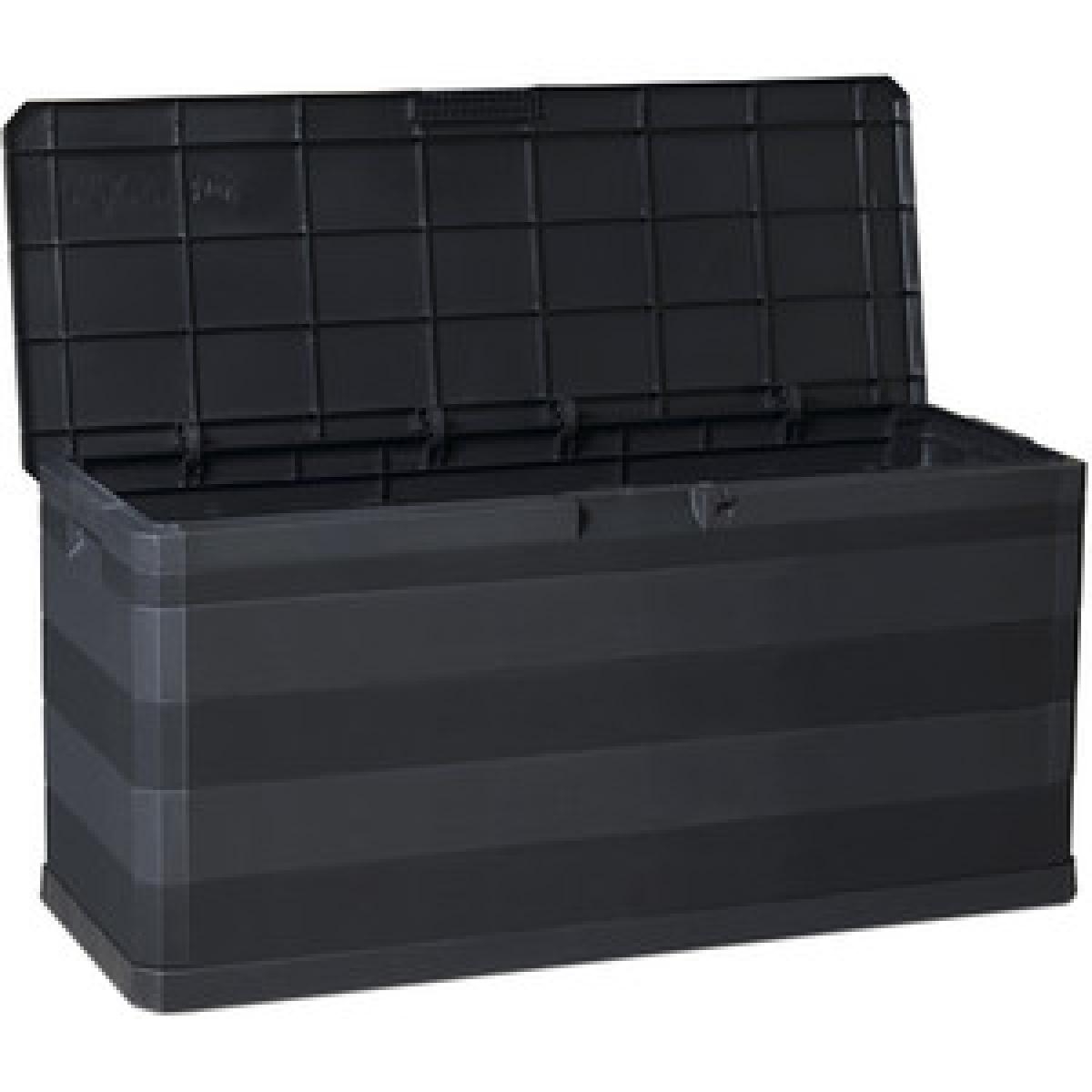 This Grey Garden Storage Box is the ideal garden store to help you keep your garden neat and tidy while also adding a touch of style. Available with either a large 90 litre capacity or an even larger 280 litre capacity, its perfect for gardening tools, toys, and cushions and blankets for furniture sets. With a muted design of alternating dark grey and flat black panels, this store will also look attractive in your garden without distracting from your decor. You can lock the Garden Storage Box with your own padlock, allowing you to keep your possessions super safe.