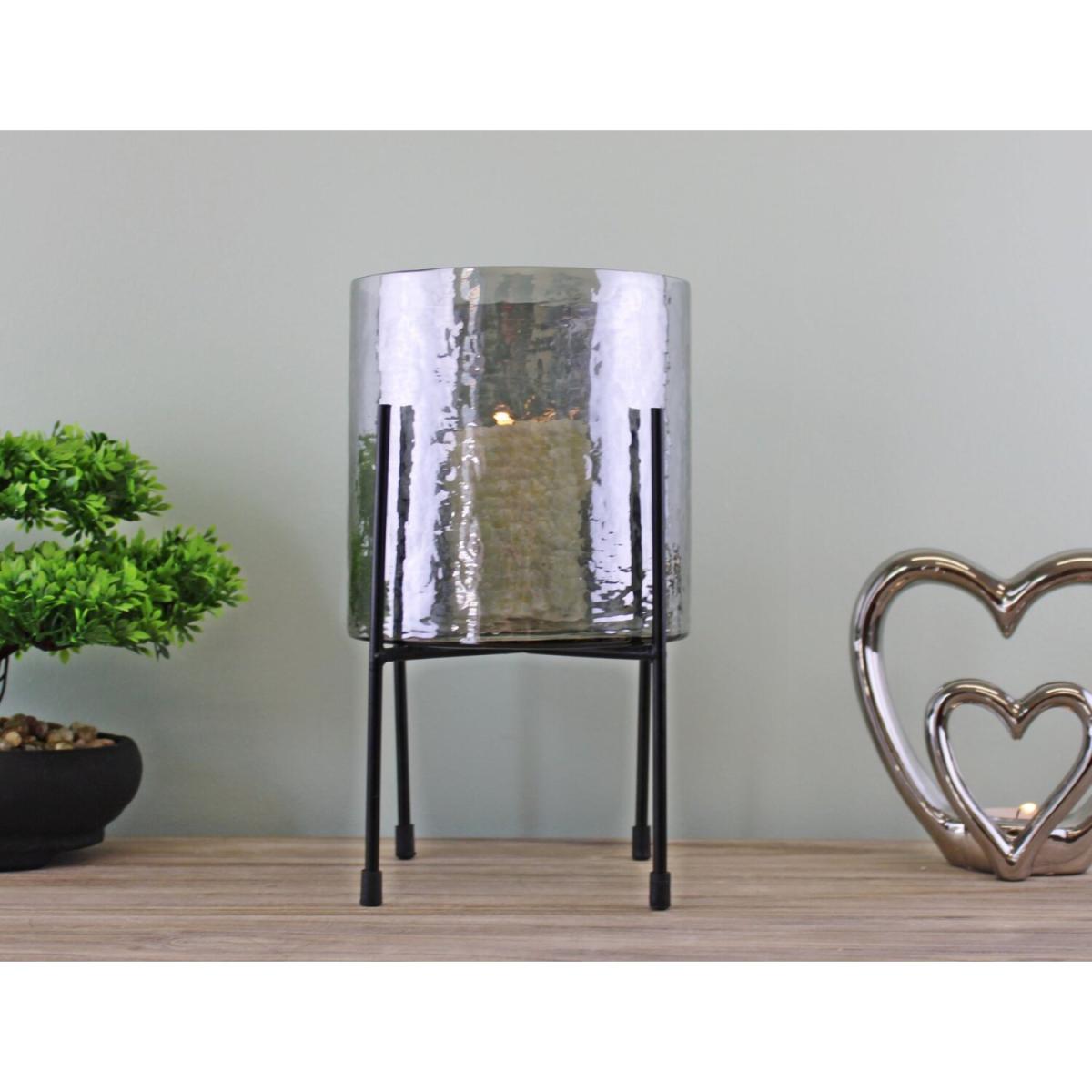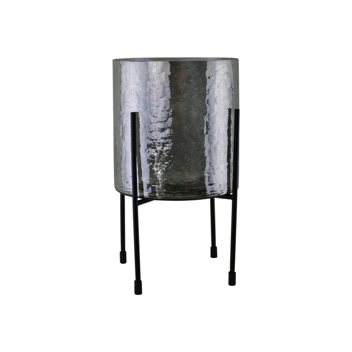 A simple yet stunning glass lantern on a black stand. This would make a stylish additon to any room of your home. This lantern could also be used as a stylish vase or planter.