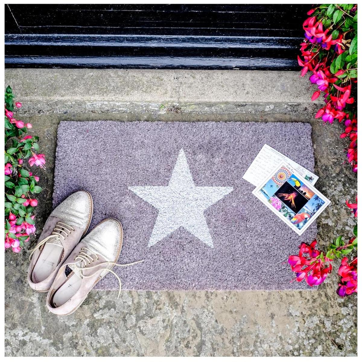 I love the grey glitter star doormat - it's a simple yet impactful piece that adds a touch of sparkle to an entrance without being overly flashy. Its neutral grey tone makes it versatile, working well in modern, minimalist, or even eclectic interiors. I’d suggest pairing it with concrete or wooden flooring for a contemporary look, while adding some greenery nearby can soften its look. Practical styling tips include keeping the doormat clean to maintain the glitter’s sparkle and placing it in a covered spot if the weather is harsh, to ensure longevity. This doormat is great for adding a welcoming vibe with a bit of visual interest right at your doorstep.