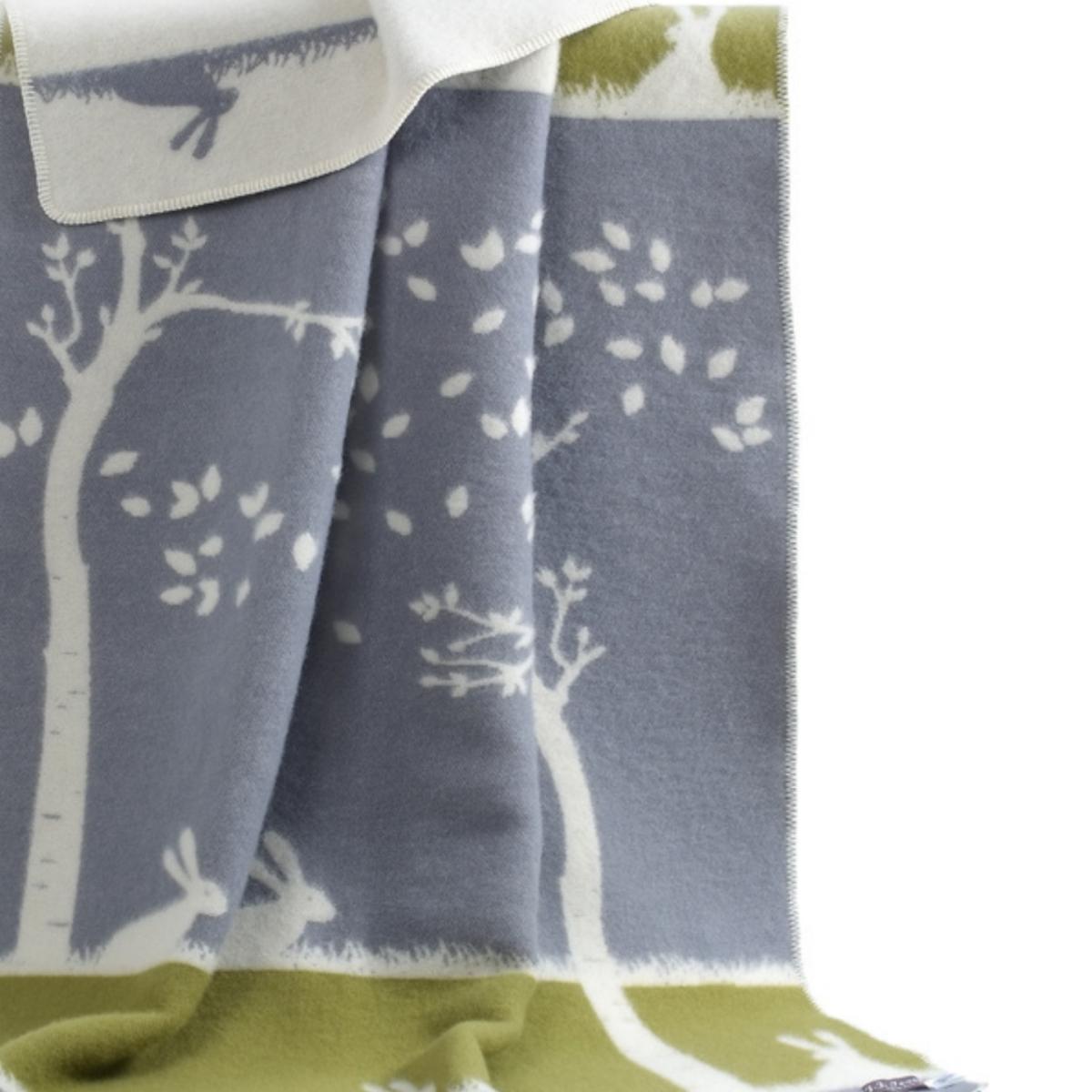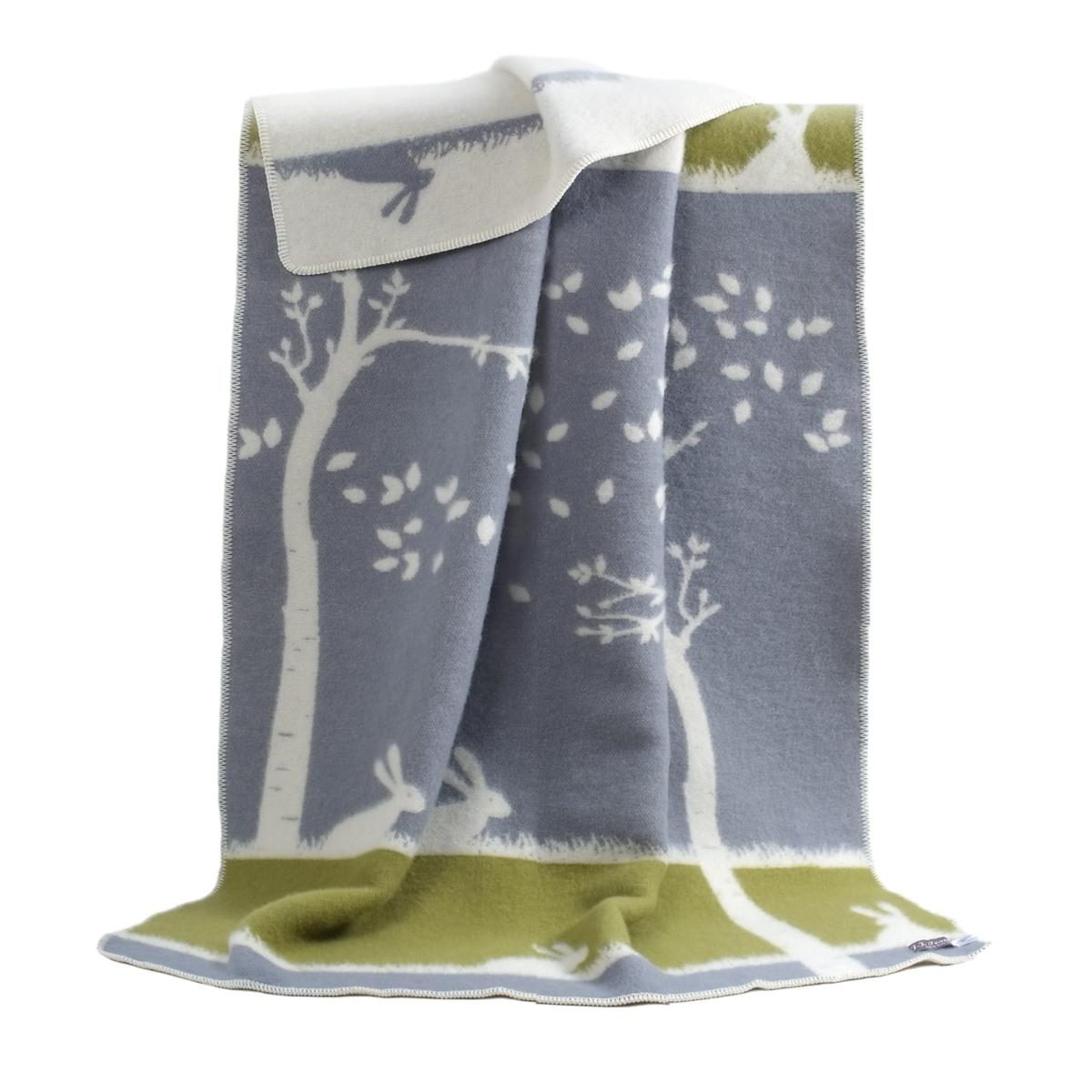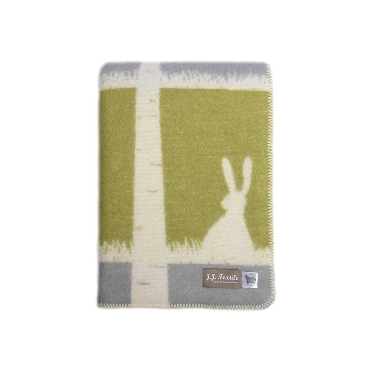 Predominantly grey with beautifully contrasting olive green and off-white images the little hares are waiting to curl up with you under the falling leaves–snugly wrapped in our 80% pure wool and 20% cotton blend ‘Glow’ stitched blanket.