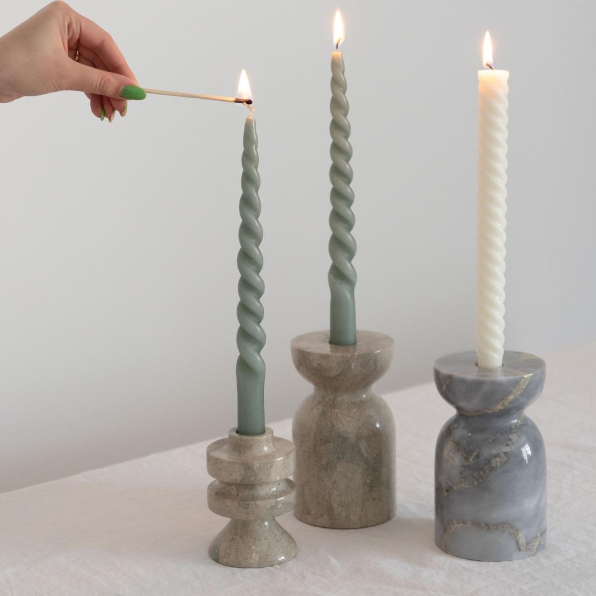 Luca Marble Candle Holder (Rustic) + Luca Marble Candle Holder (Fire Gray) Add depth and character to your decor with this luminous pairing. The rustic Luca Marble Candle Holder brings warmth and earthy charm, while the Fire Gray counterpart adds a bold, sophisticated edge. Together, they create a striking ambiance for your home.