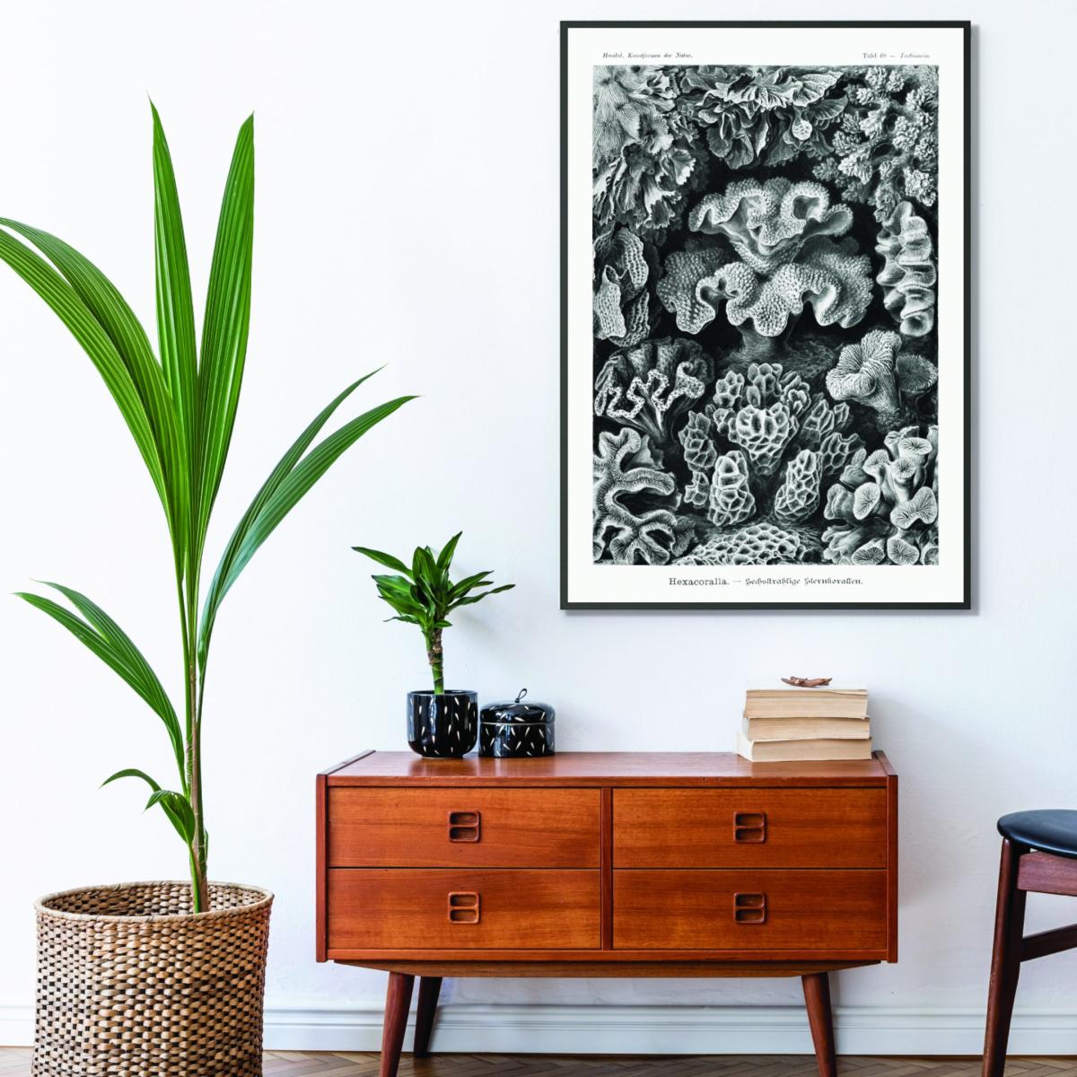 I love this print for its scientific elegance and intriguing texture-it makes a striking focal point in a room. The monochromatic palette makes it versatile, working well in modern and minimalist interiors, but it can also add a touch of sophistication to more eclectic schemes. It pairs beautifully with neutral tones or contrasting colours like deep blues or warm ochres. For styling, consider framing it with a clean, slim border or a vintage moulding to emphasise its vintage illustration charm. It’s ideal for placing above a sideboard, in a study, or even in a bathroom to complement other marine or natural-themed decor. Keep the surrounding decor simple to let the detailed print shine, and you’ll have an eye-catching piece that sparks conversation.