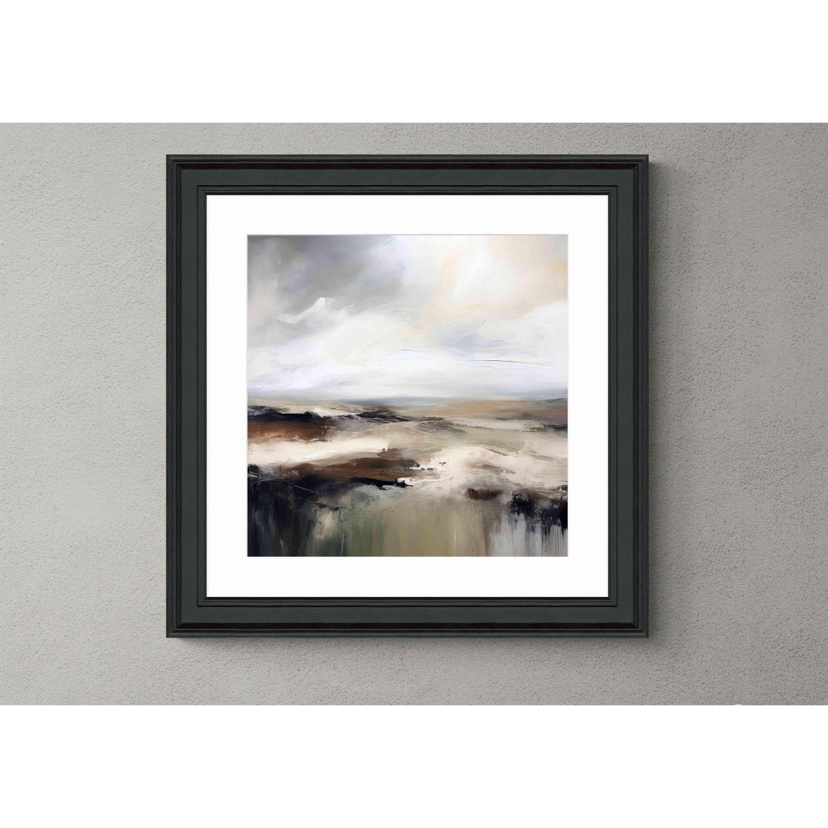 Atmospheric tones of grey and burnt sienna dominate in this statement framed picture, reproduced from an original work by artist Raymond Powers. Why you'll love it This framed picture captures an atmospheric landscape. Dramatic and impactful contemporary abstract style. Reproduced from an original artwork by Raymond Powers. Framed behind glass with a white mount. Modern black frame. For maximum impact, pair with Grey Horizons II framed picture, sold separately. Made in England. Online only. This framed picture is part of the Furniture Village home accessories collection. What you need to know Supplied with a metal hanging fitting and nylon cord. Indoor use only. Dimensions Height: 67 cm (27 in). Depth: 3 cm (2 in). Width: 67 cm (27 in).