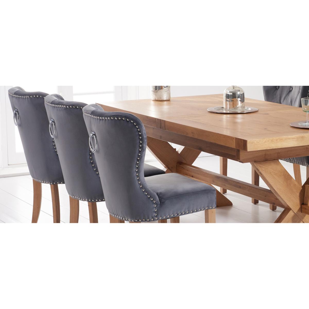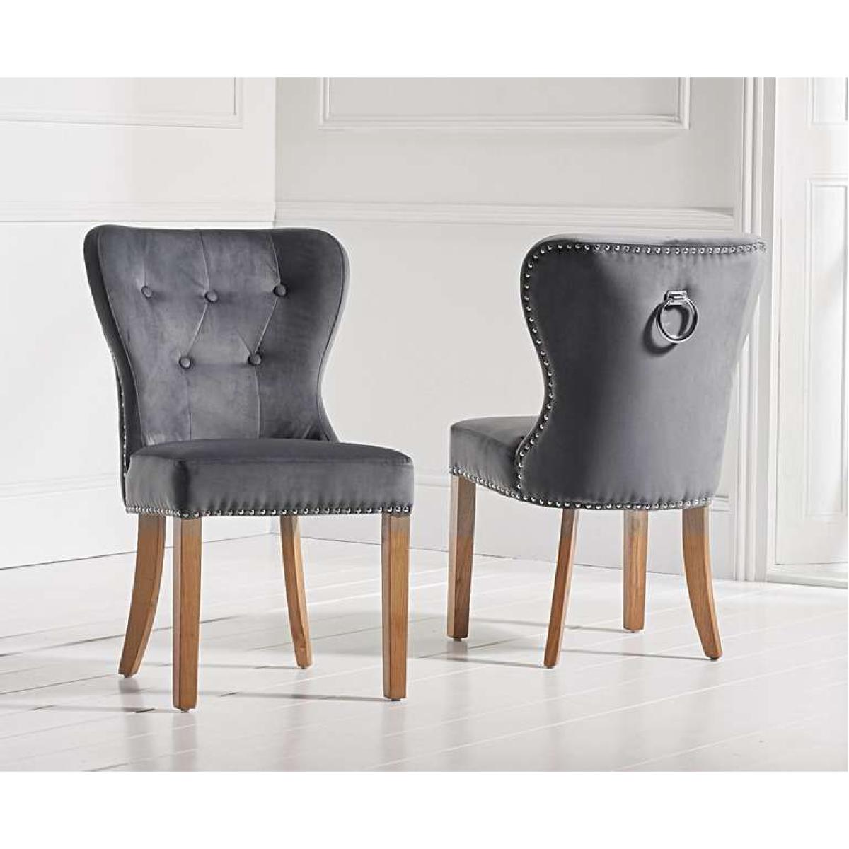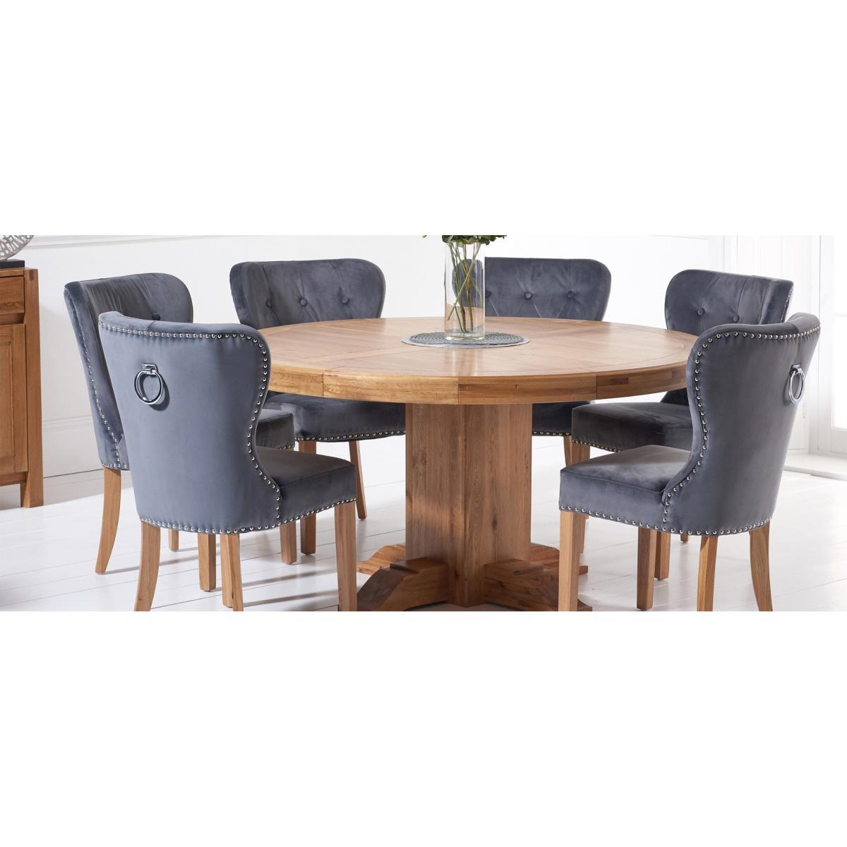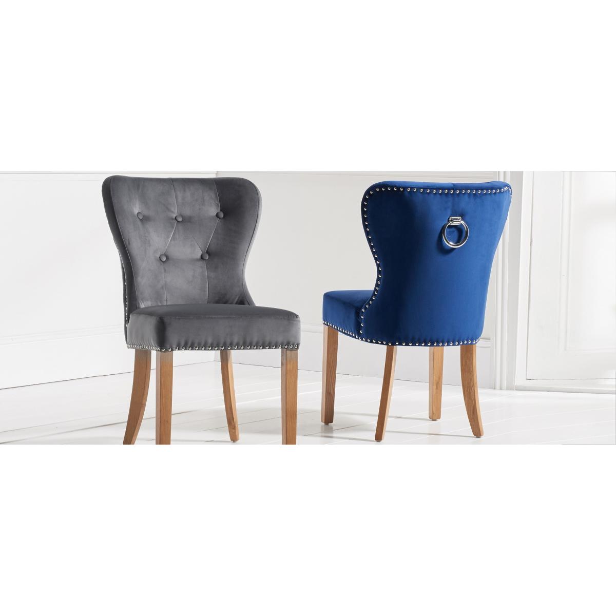 Upholstered in soft to the touch velvet, the Keswick sits beautifully around oak or marble tables.