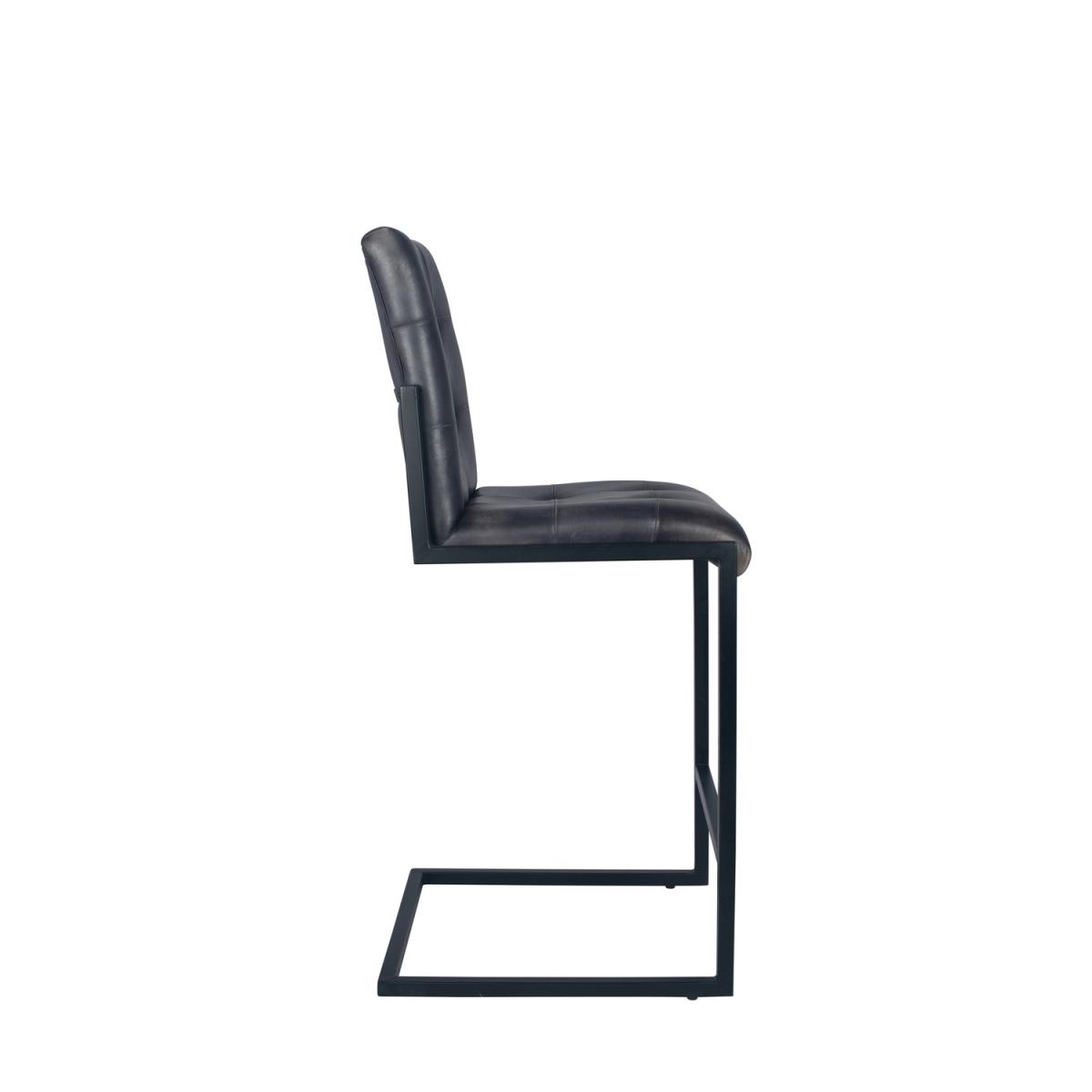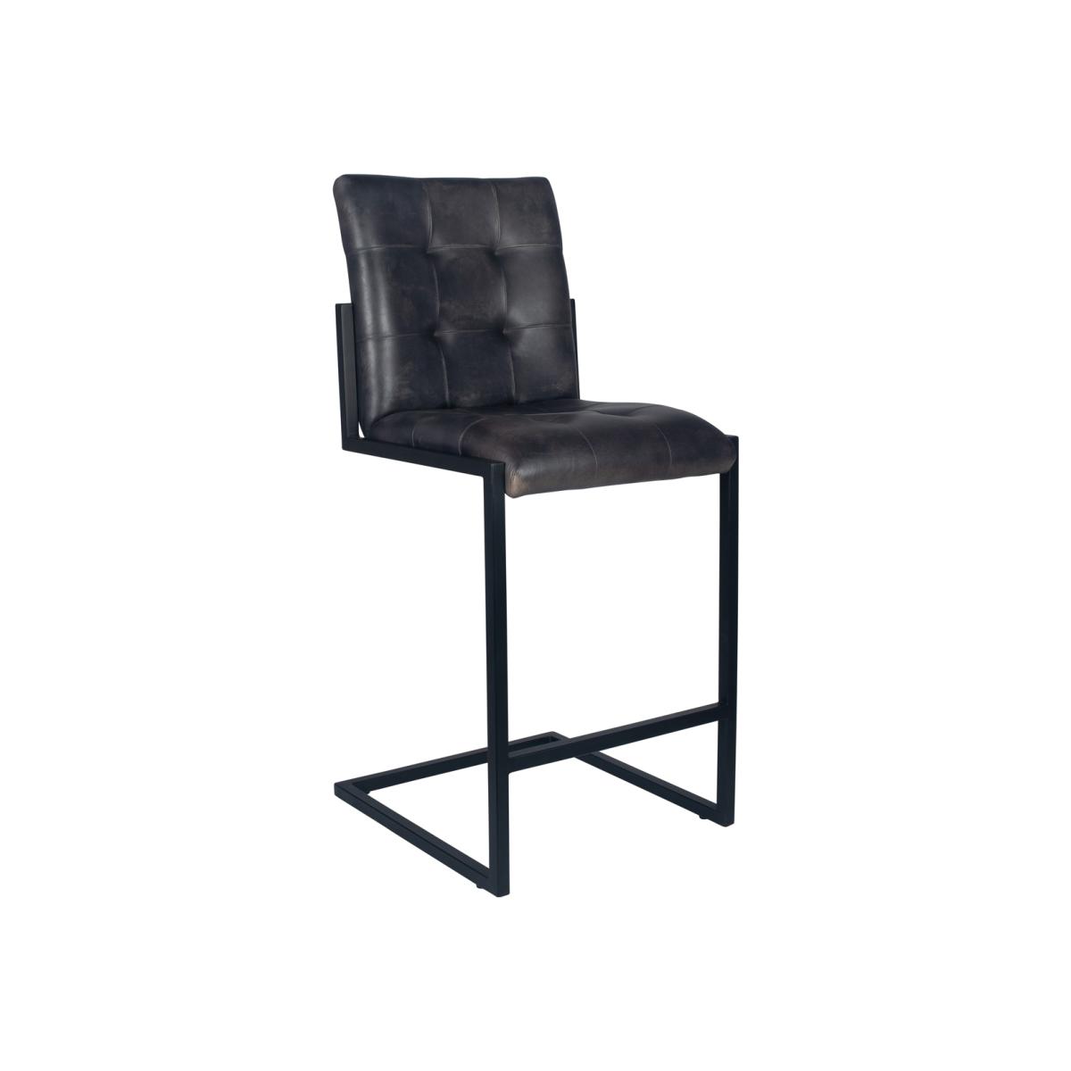Grey Leather & Iron Buttoned Bar Stool with Back - Arlo