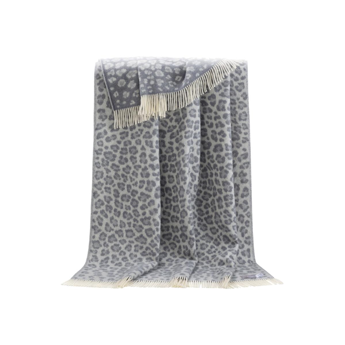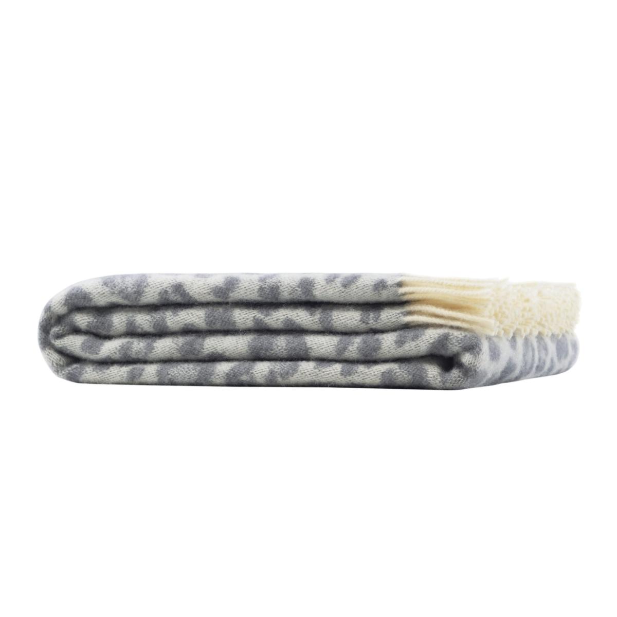 Take a walk on the wild side with our throw that features a design of always chic leopard-print. This throw is woven in 100% wool with a fringed-edge and comes in a light grey colour-scheme. On your sofa, chair or bed for cosy nights by the fire, it is useful any time of year. Perfect for cool summer evenings, the patio or a picnic at the park. A super-soft layer to love all year long, this throw was made for lounging with.