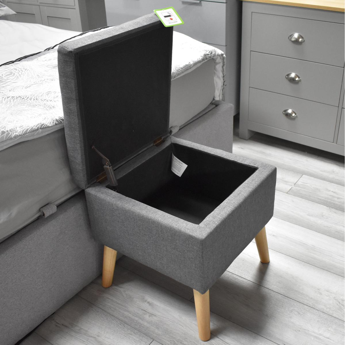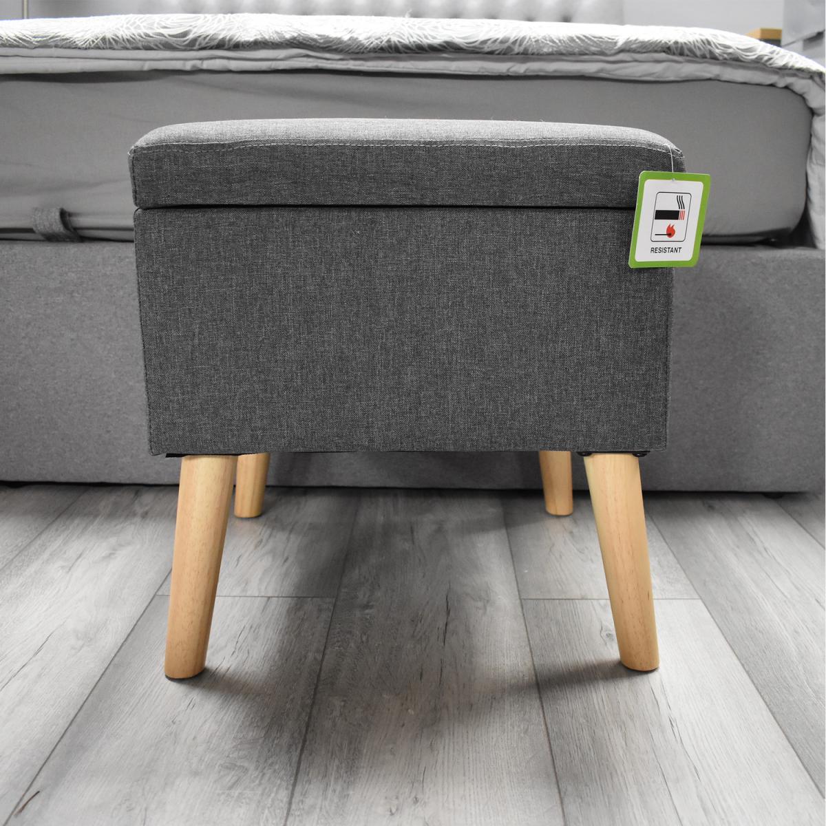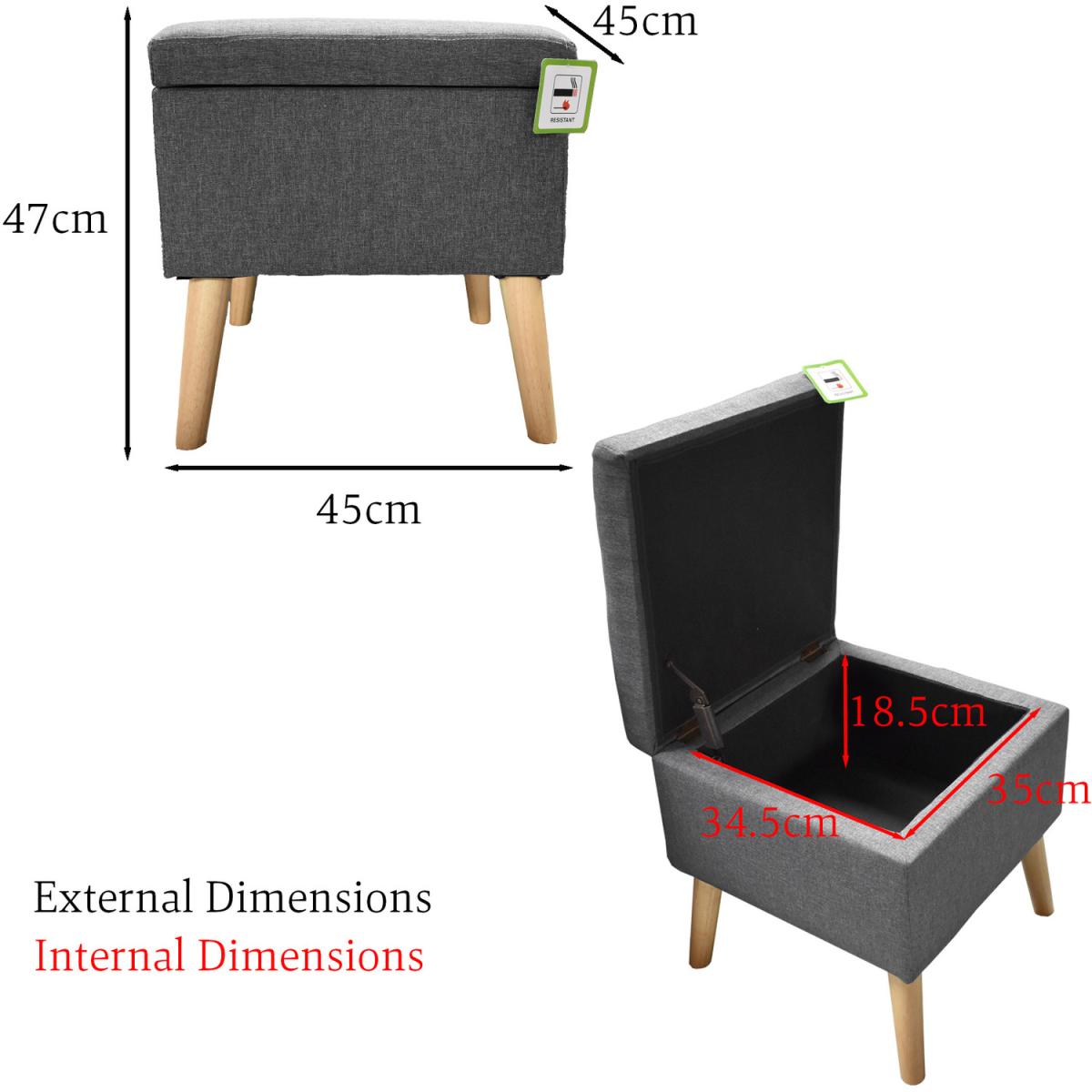 Introducing our Grey Linen Ottoman Footstool with Solid Wooden Legs, a stylish and practical addition to any living space. Upholstered in a sophisticated grey linen fabric, this footstool effortlessly complements a variety of decor styles, from contemporary to traditional. The sleek design is enhanced by the solid wooden legs, which provide stability and durability for long-lasting use. This footstool not only offers a comfortable place to rest your feet but also features hidden lift-up storage that can be easily accessed with the assistance of a strong metal hinge. This clever storage solution allows you to keep your living area clutter-free by neatly stowing away blankets, pillows, magazines, or any other items you wish to keep out of sight. The generous storage space ensures that your essentials are within reach while maintaining a clean and organized living space.