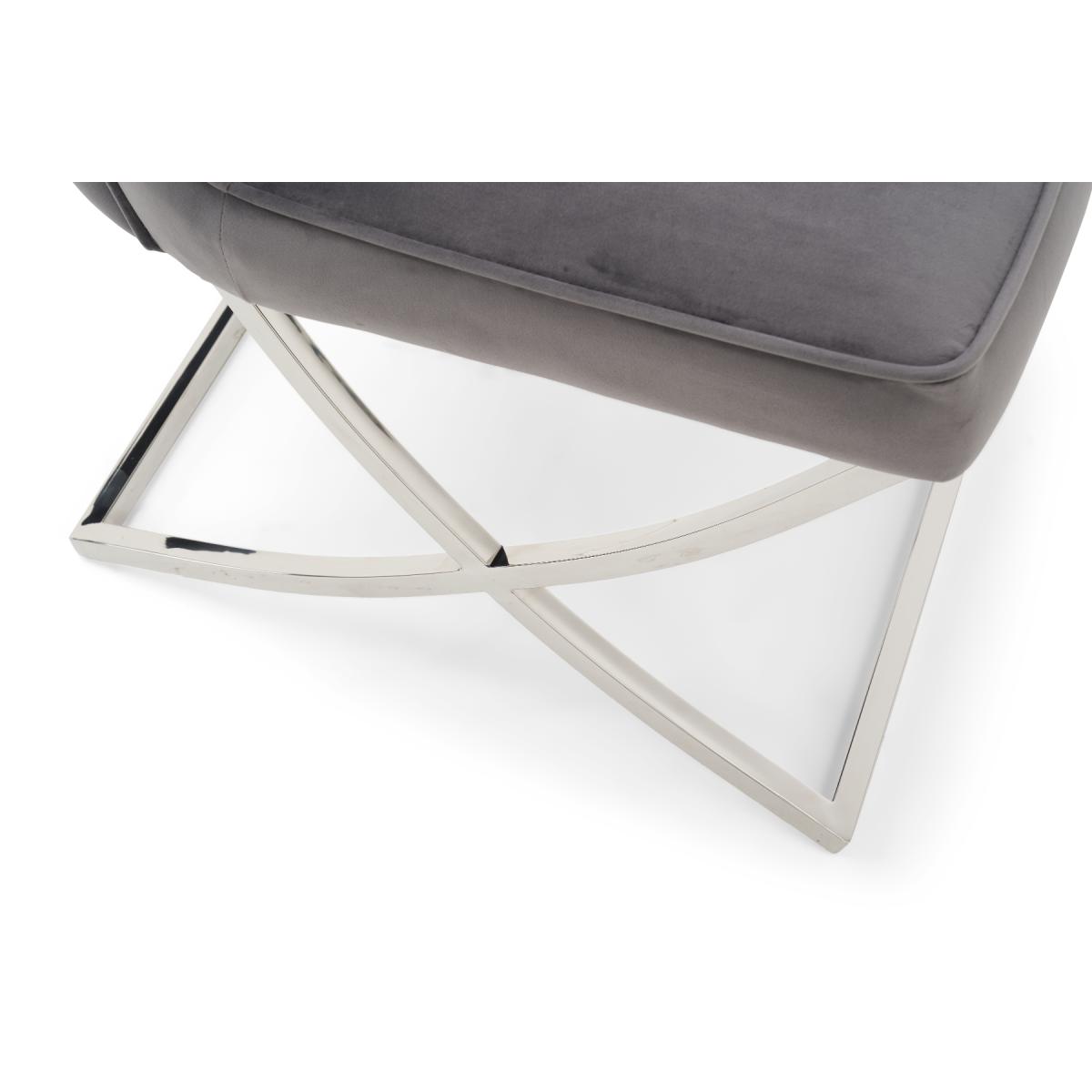The contemporary metal legs and classic luxurious velvet makes the Lorenzo chair a statement piece.
