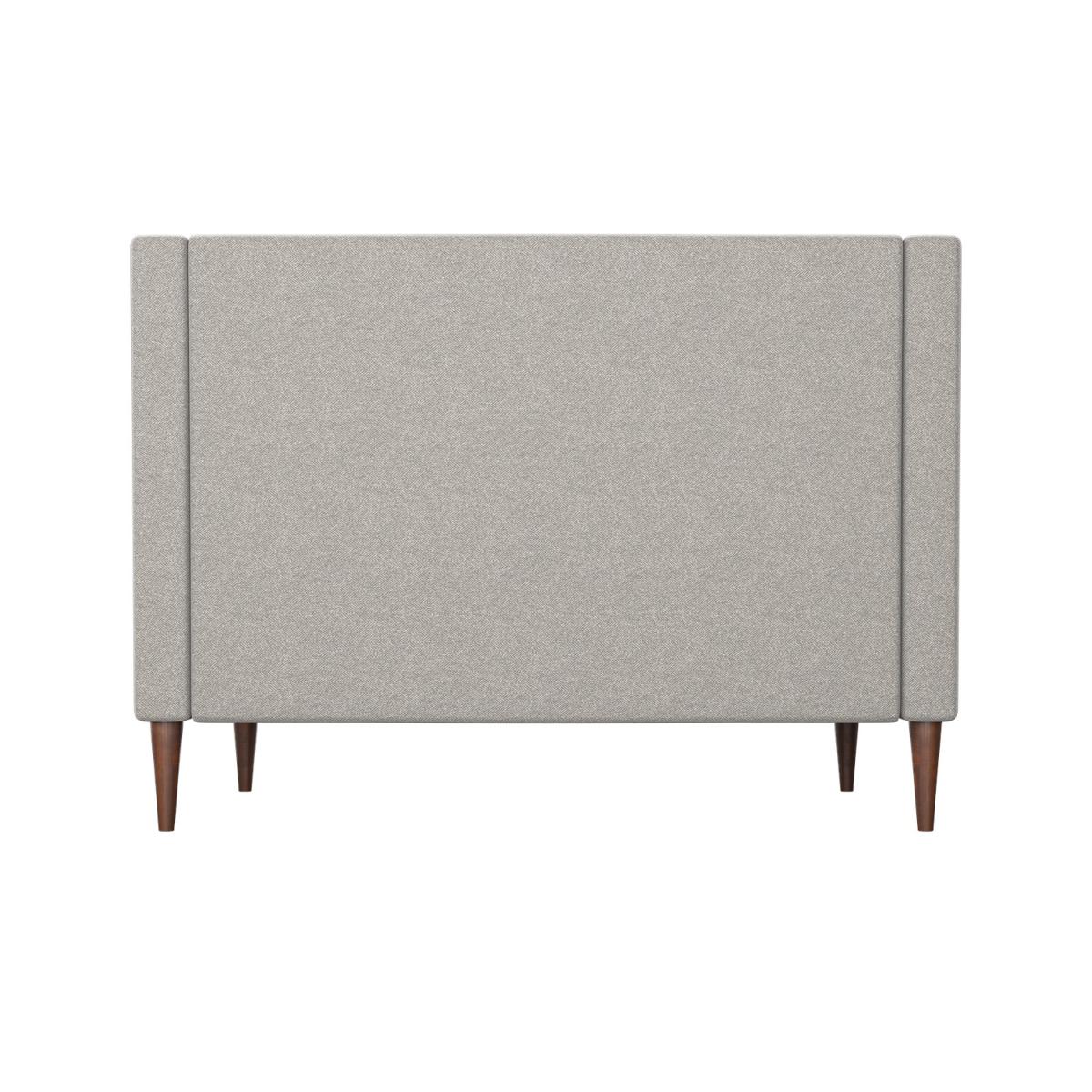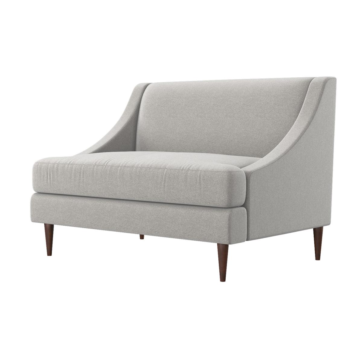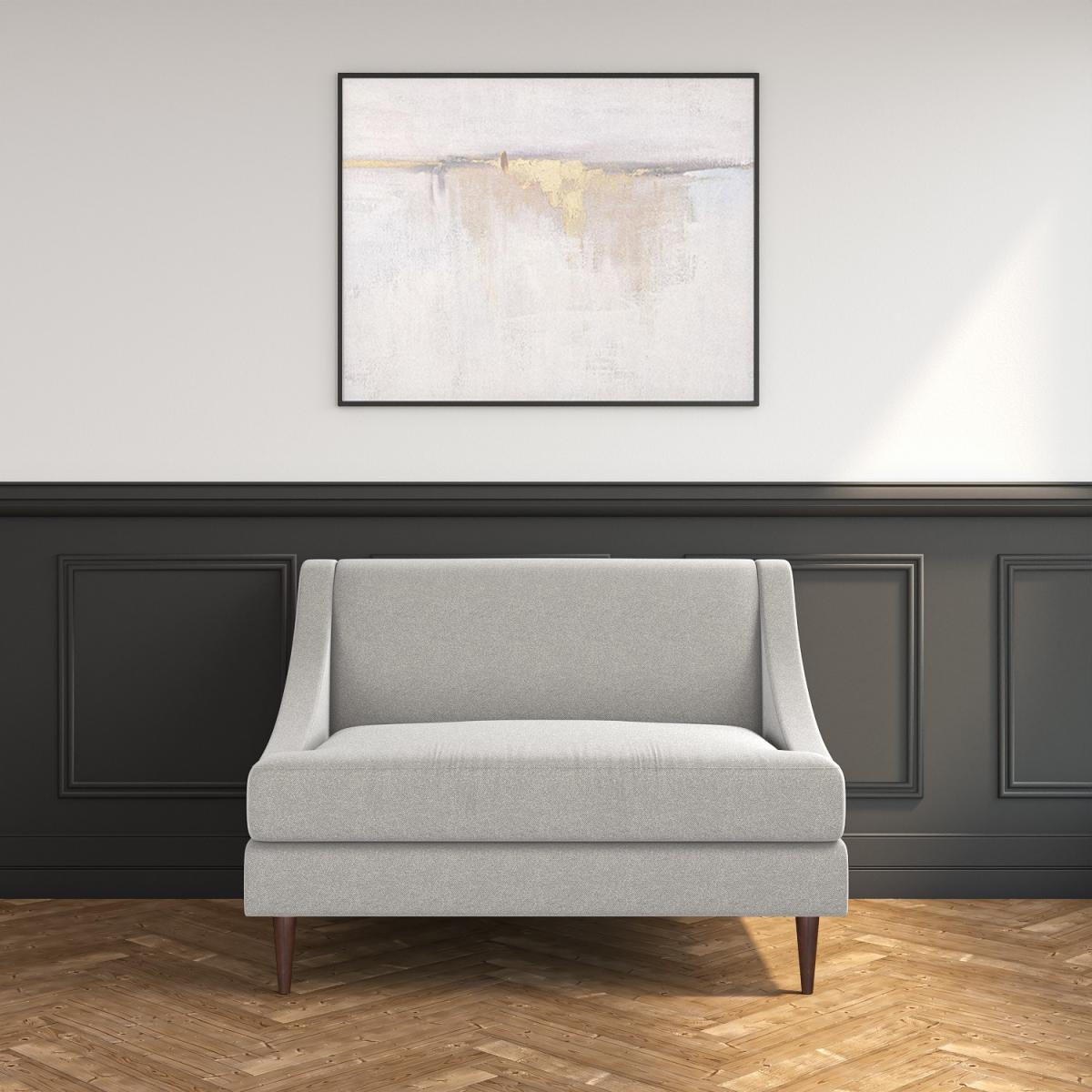 Features we love Mid-century design grey fabric loveseat Relax in style with curved arm features. Upholstered in neutral grey chevron print fabric Foam filled cushions add comfort and support. Minimal assembly just attach the dark wood legs. All about me. The Maia woven fabric loveseat is the perfect addition to any living space. The minimal chevron design is beautifully simplistic and will complement any modern decor. With enough room for 2 people there is plenty of space to entertain your guest or have a cosy family night in. With foam filled back and seat cushions this sofa offers the perfect place to recline and relax on an evening. Need to know. Overall dimensions. H80 x W110 x D86 cm Seating dimensions. W90 x D57 cm Packed dimensions. No. of Boxes 1 - Weight 34kg – H72 x W112 x D88 cm Colour. Silver grey Finish. Woven fabric and wooden legs Material. 100% polyester Filling. Foam Assembly required. Yes
