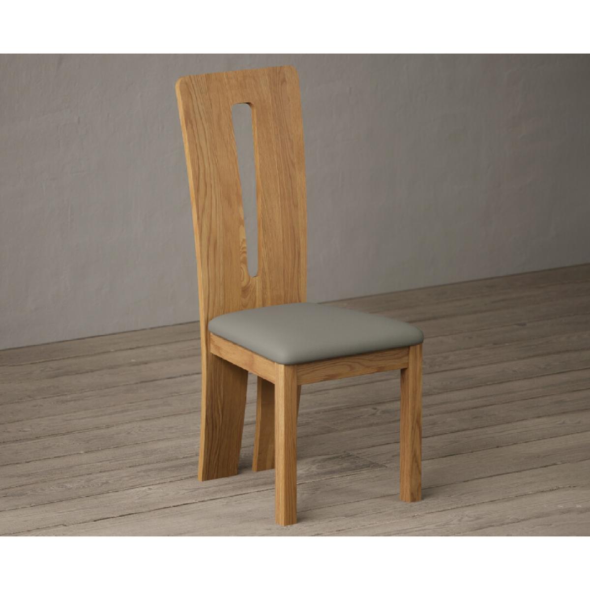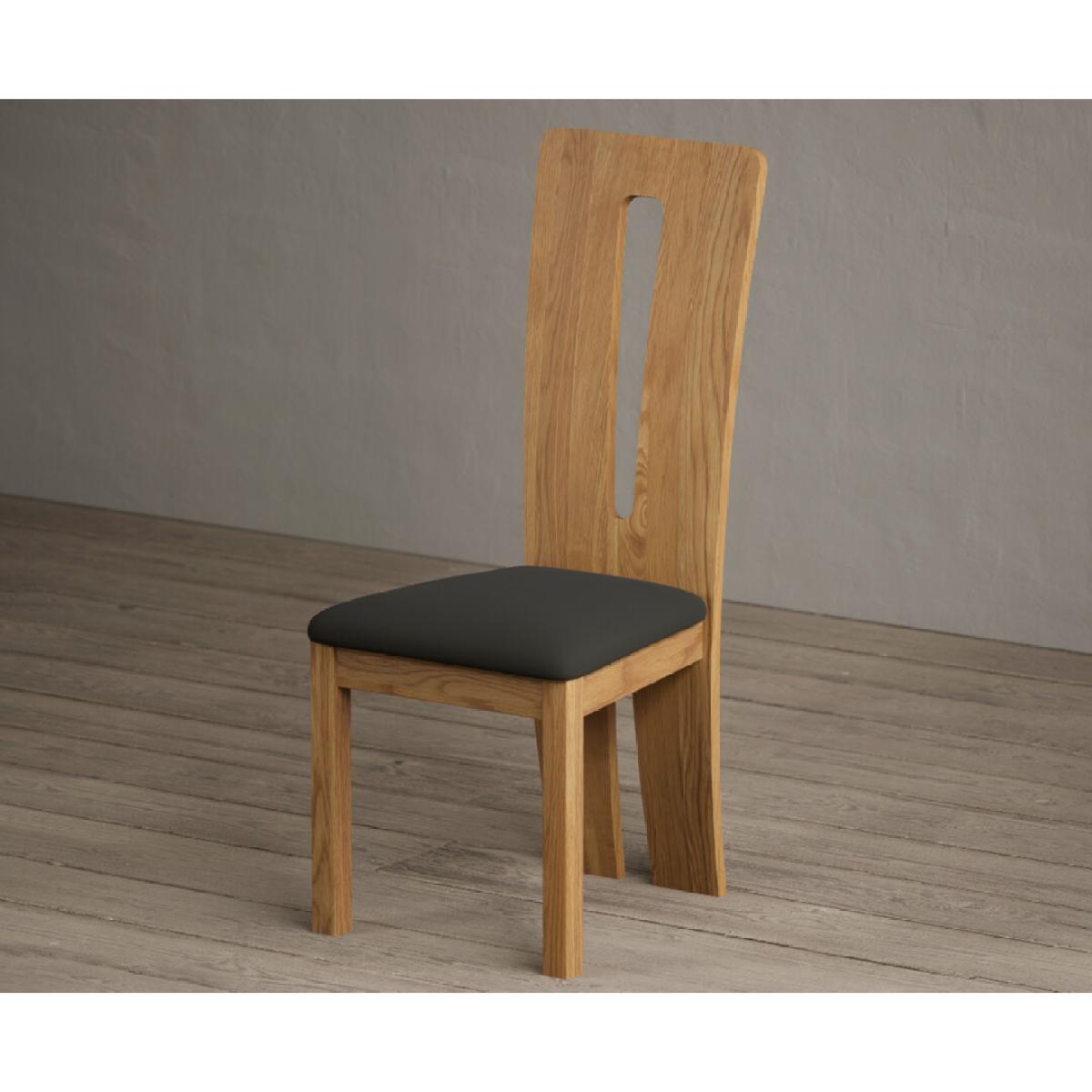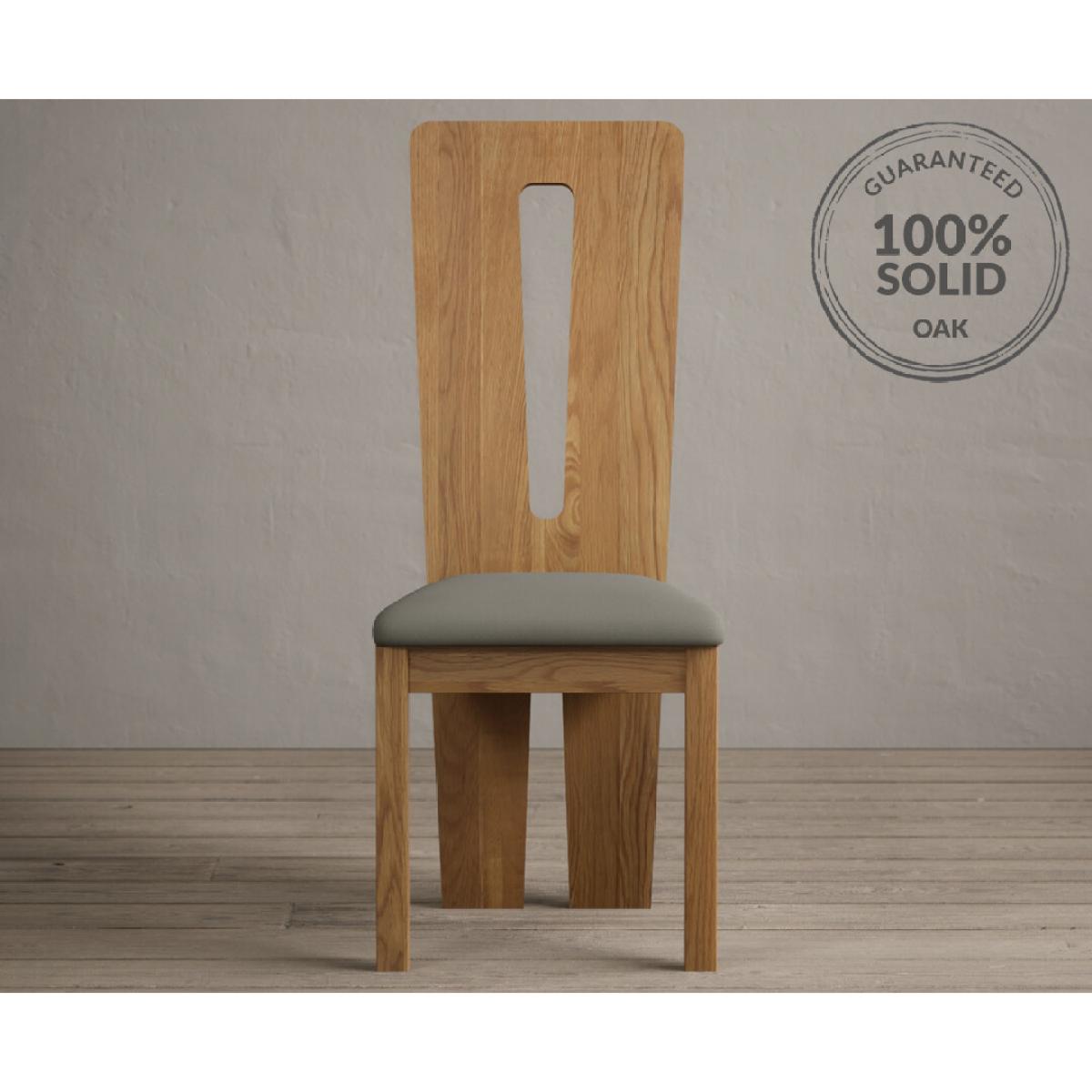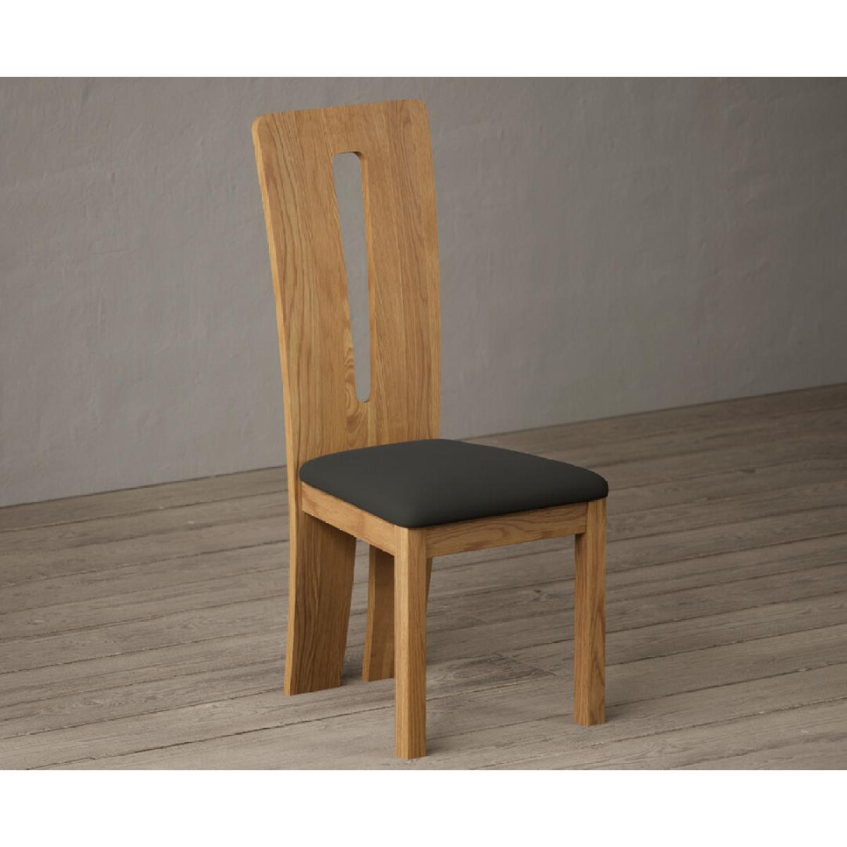 The Lucca Solid Oak Dining Chairs with Faux Leather Seat Pad are crafted from 100% solid oak, with a curved floor-length backrest with a cut-out design and faux leather seat pad.
