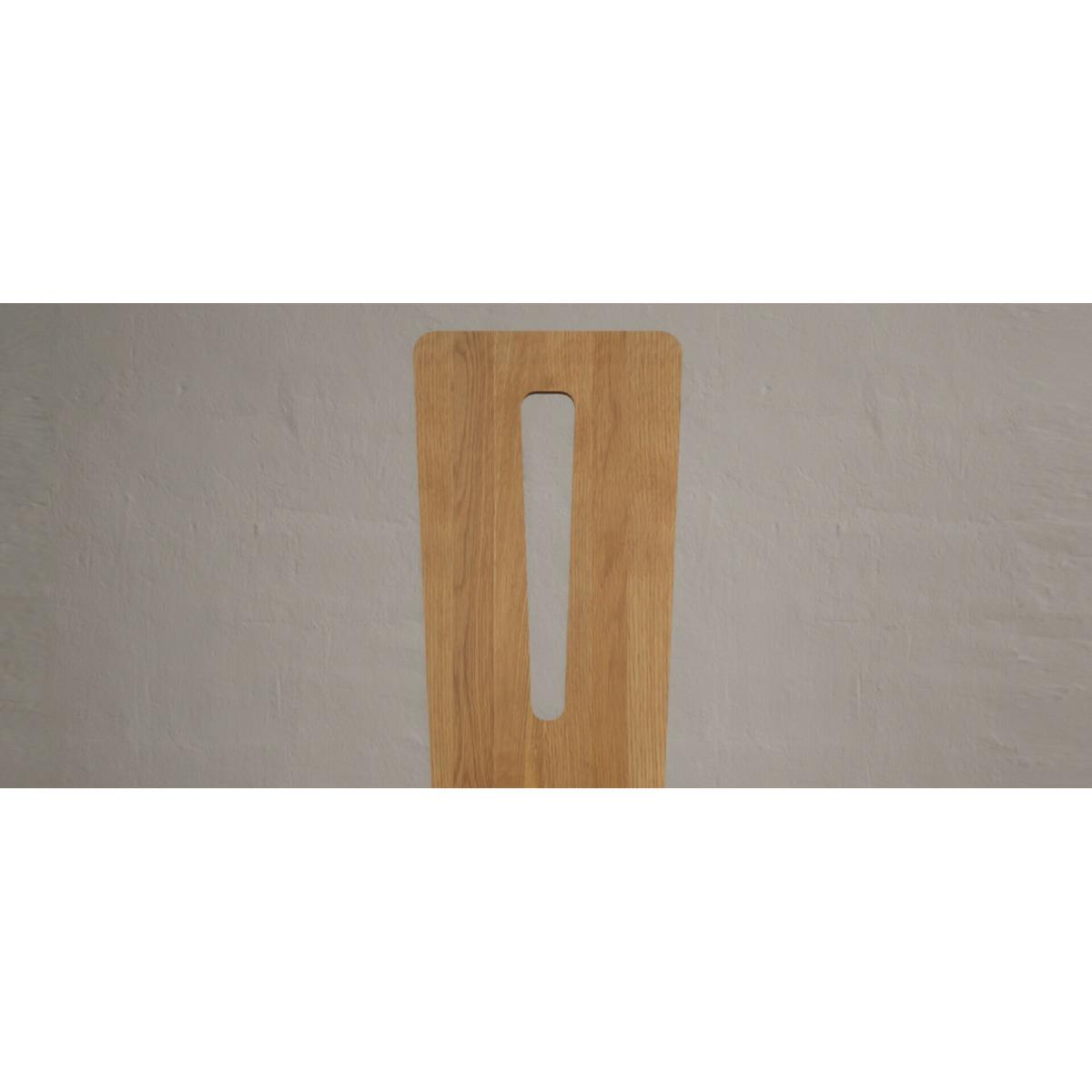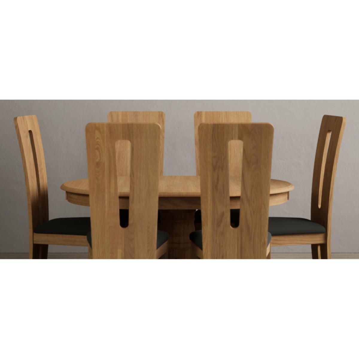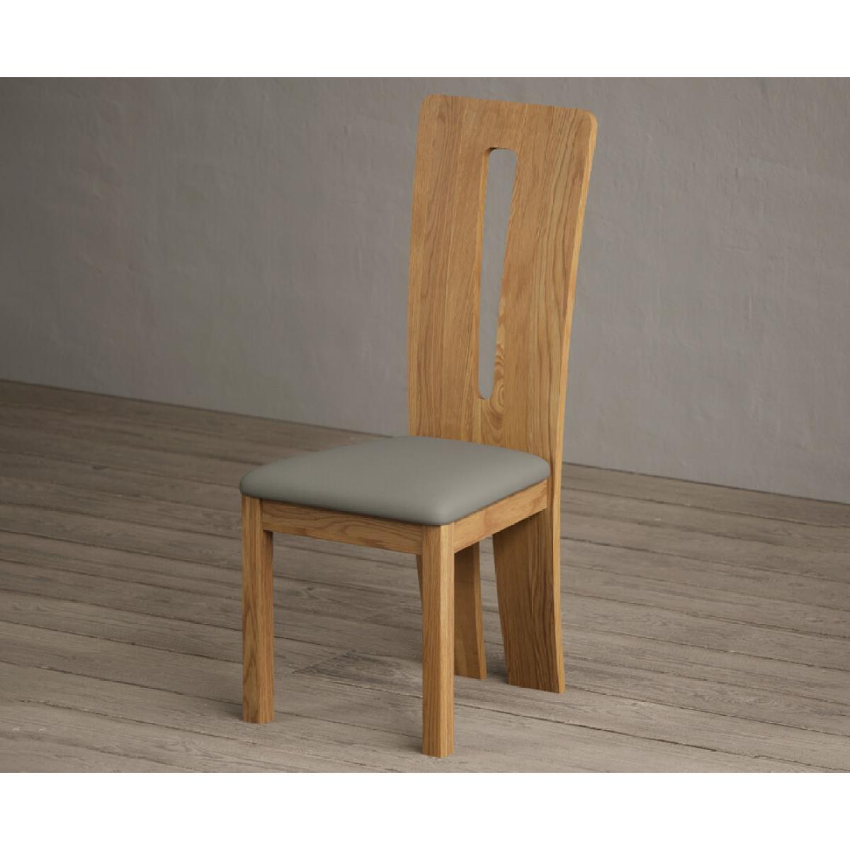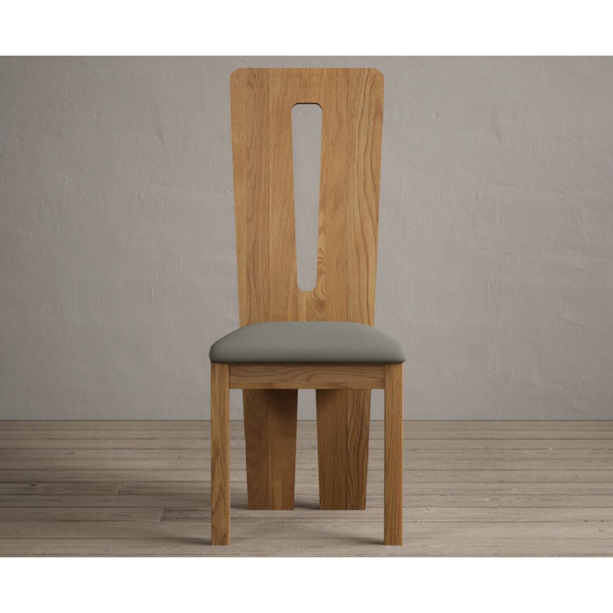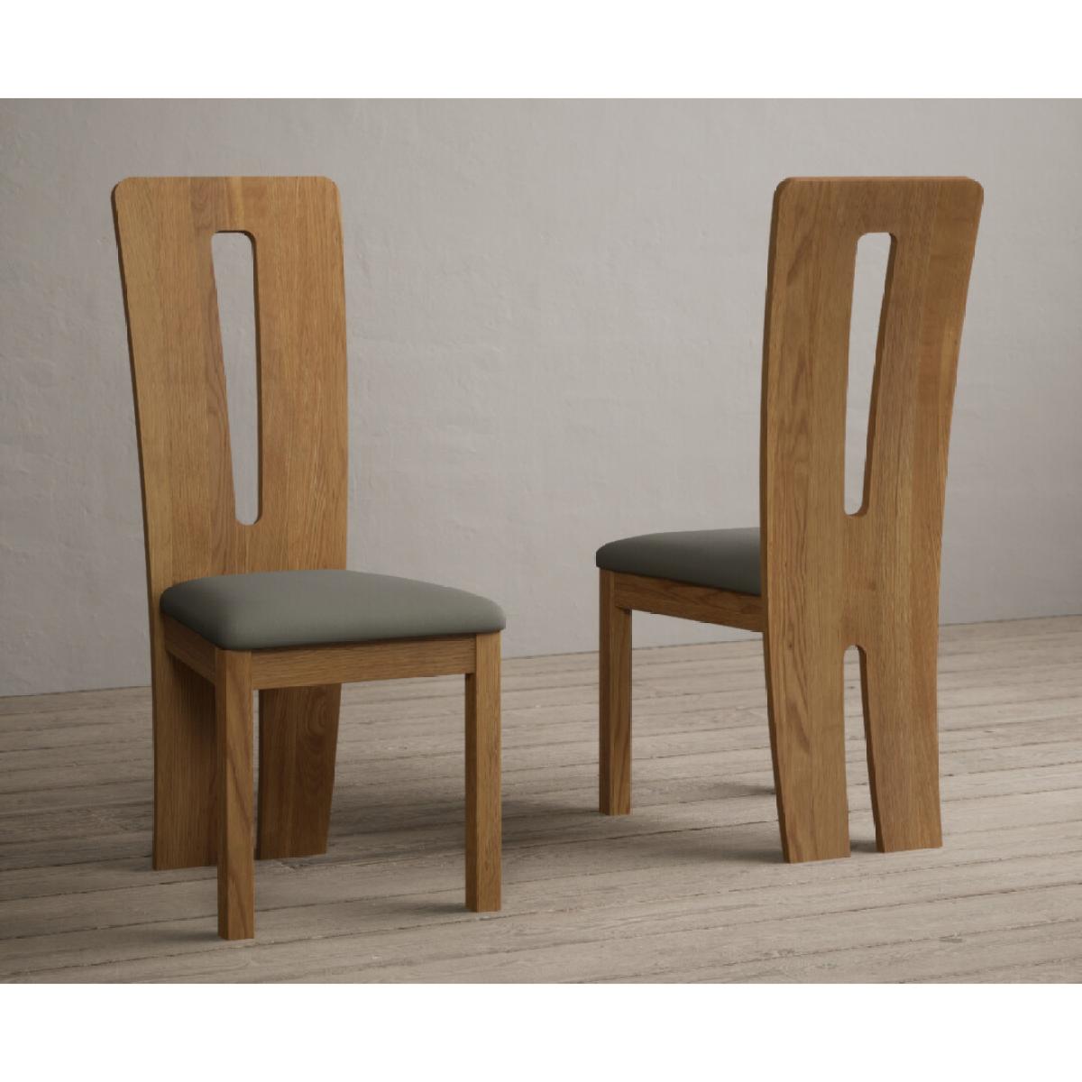 The Lucca Solid Oak Dining Chairs with Faux Leather Seat Pad are crafted from 100% solid oak, with a curved floor-length backrest with a cut-out design and faux leather seat pad.