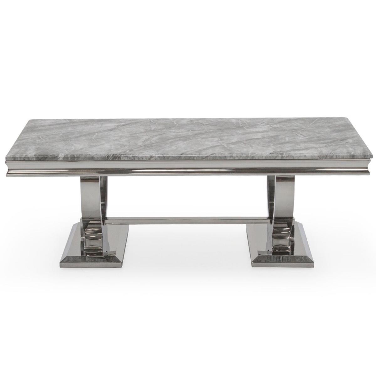 Interest Free Finance available on this dining table & chair set Comes with Dining table table and 4 Dining Chairs Creates an instant focal point with its unique shape and modern good looks Hardwearing grey marble top Stainless steel base Comfortably seats 6 people A stunning edition to any modern home Super easy to wipe clean, great for such a practical piece Simple assembly required