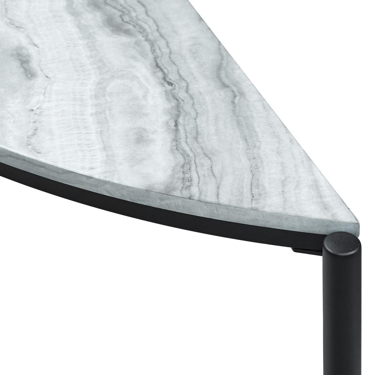 I love this half moon console because it combines functionality with a sleek, contemporary look. The grey marble top adds a touch of sophistication and works beautifully in both modern and transitional interiors. It's perfect for narrow hallways, entryways, or behind sofas, where space saving is key. To style, consider layering with a minimal table lamp, a small vase of fresh flowers, or a few favourite books to create an inviting vignette. Its versatile shape and colour mean it pairs well with various colour schemes and materials - from soft pastels to bold accents - making it a reliable piece to elevate your decor effortlessly.