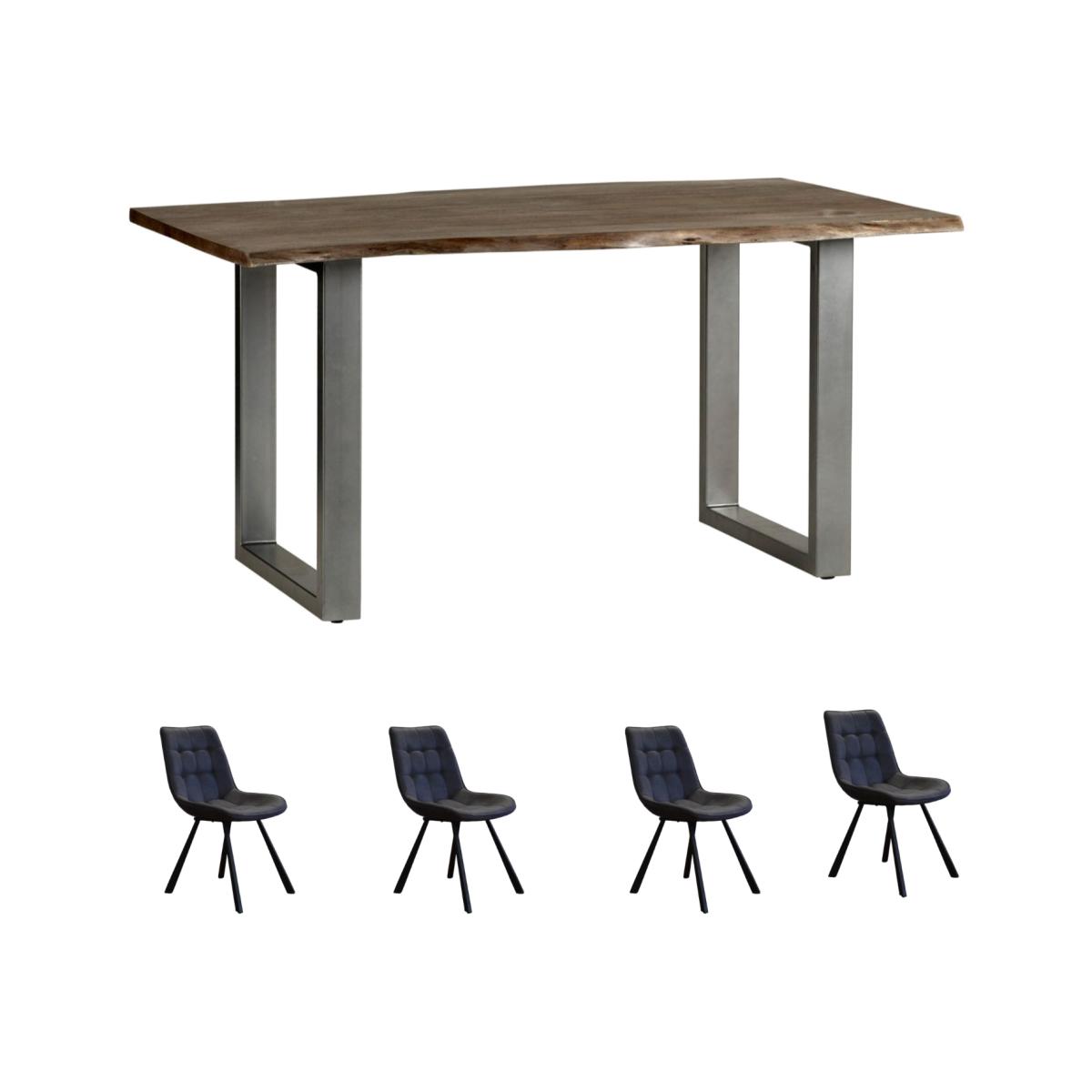 This elegant Grey Essential Live Edge Medium Sized Dining Set is ready to be used in your home handcrafted from sustainable sourced solid Acacia Wood, this dining table is lightly stained in a grey, matte finish, with a metal base. This range has unique variations in the wood, along with natural knots and slight cracks which add to its character. The set includes 4 Industrial Style Chairs, with steel legs in black powder coating, and a Light Brown Tan PU leather seat.