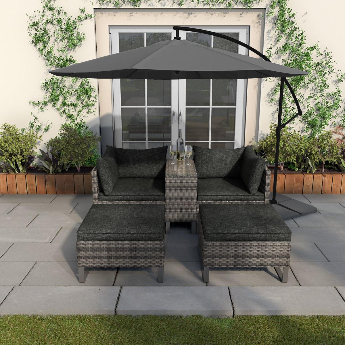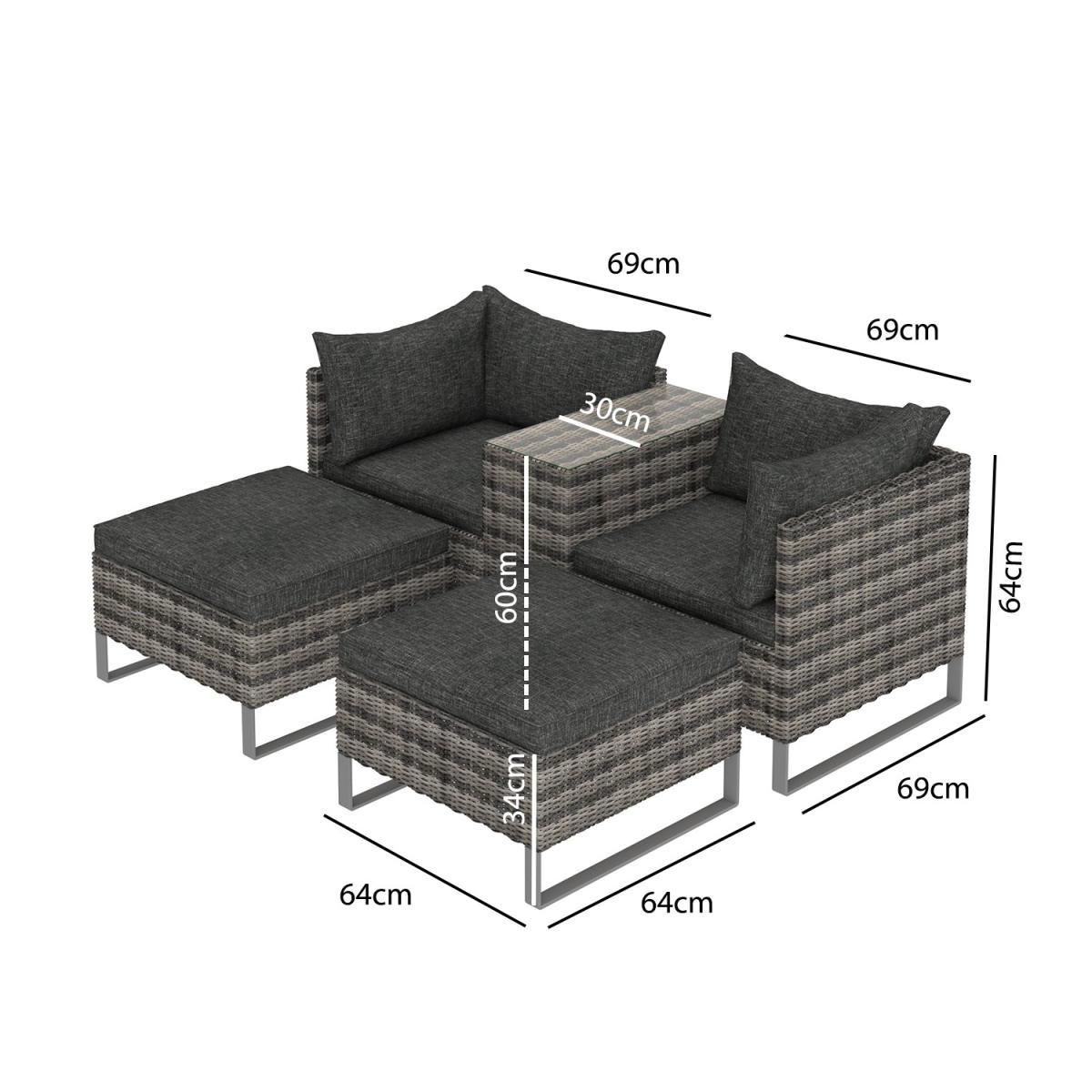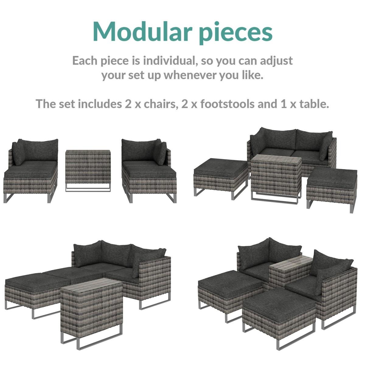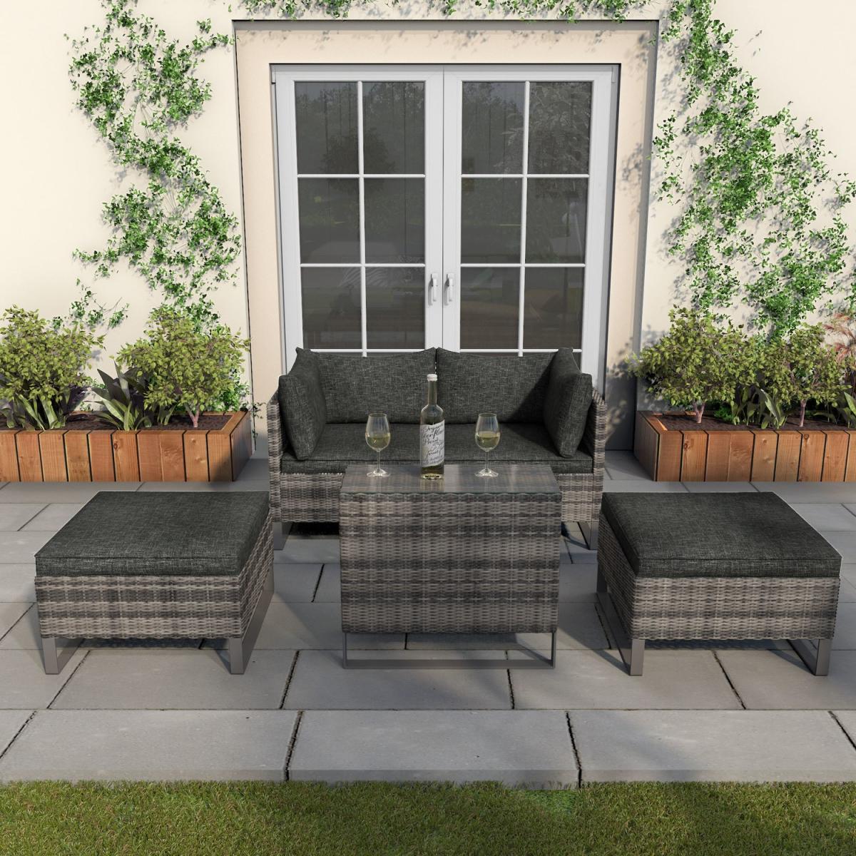 Enjoy simple garden dining or relaxing with this cosy garden set. Enjoy the comfort of being outdoors thanks to the deep filled cushions. It's a versatile option, thanks to its reconfigurable design. Try it as two sun loungers, a corner seating area or even a traditional four-seat set up at a moment's notice. Made from synthetic all-weather rattan, it'll withstand sun, mould and unpredictable British weather. Enhance the life of your garden furniture- This product has been designed to be used outdoors. To make the most of your furniture, we recommend that you store it indoors, move it in a sheltered position or protect it by covering it up in bad weather and over the winter period. Why not invest in one of our garden stores, super handy if your furniture comes with any upholstery (cushions), which must always be kept dry.