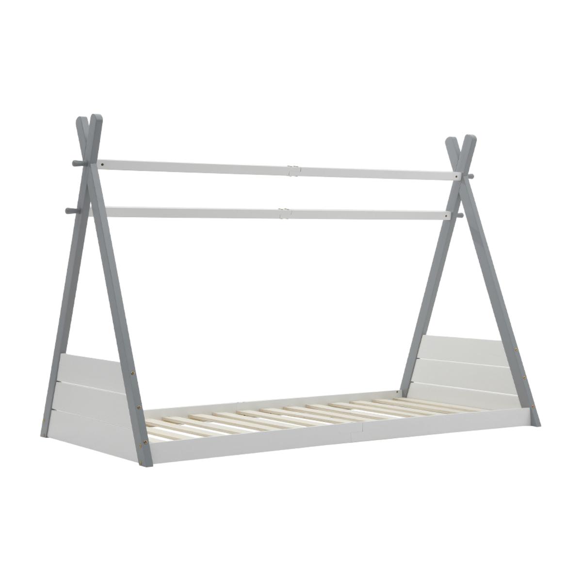 Grey Montessori Pine Wood Kids Bed Frame - Grey and White