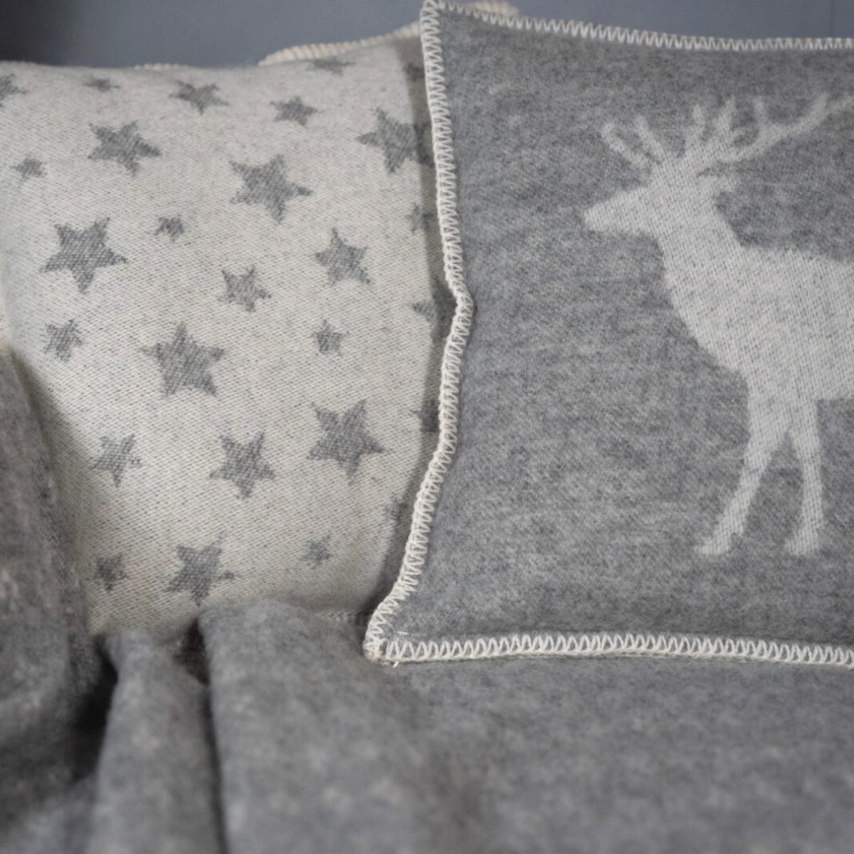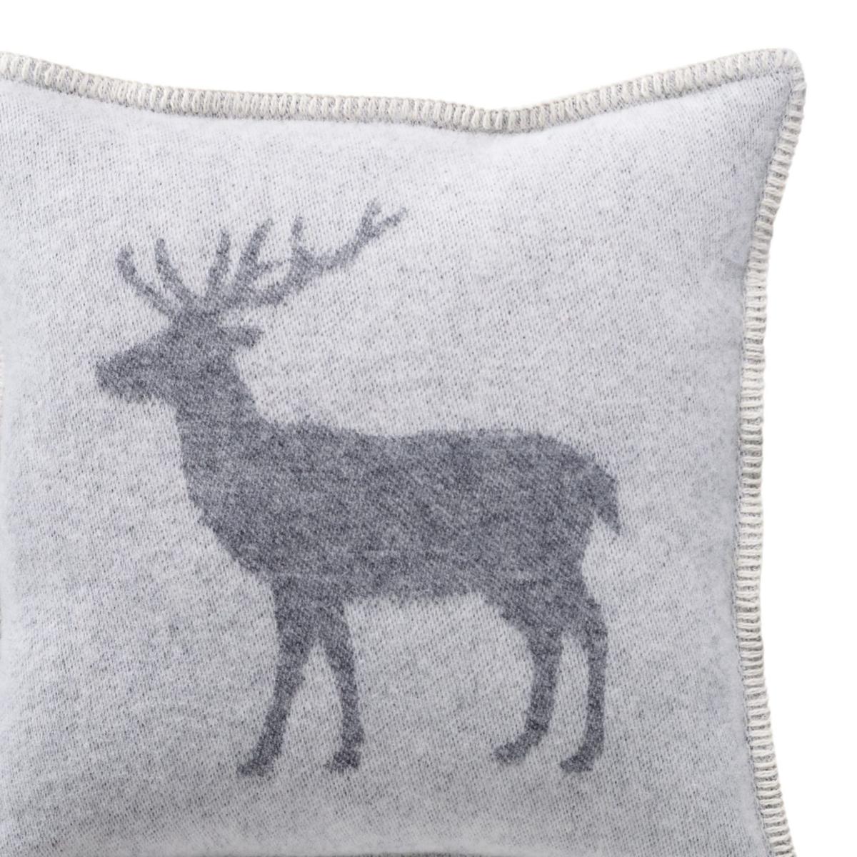 The deer, a woodland winter icon, adorns this soft and warm 100% pure wool cushion. In a soft grey colour scheme with inverse colours on the reverse, bring a touch of winter, without the cold, to your home. The cushion cover has a zip closure (pad not included) and is fully washable. Pair it with our Deer Red Cushion or create a grey-themed winter woodland and match it with our moose and snowflake cushions.