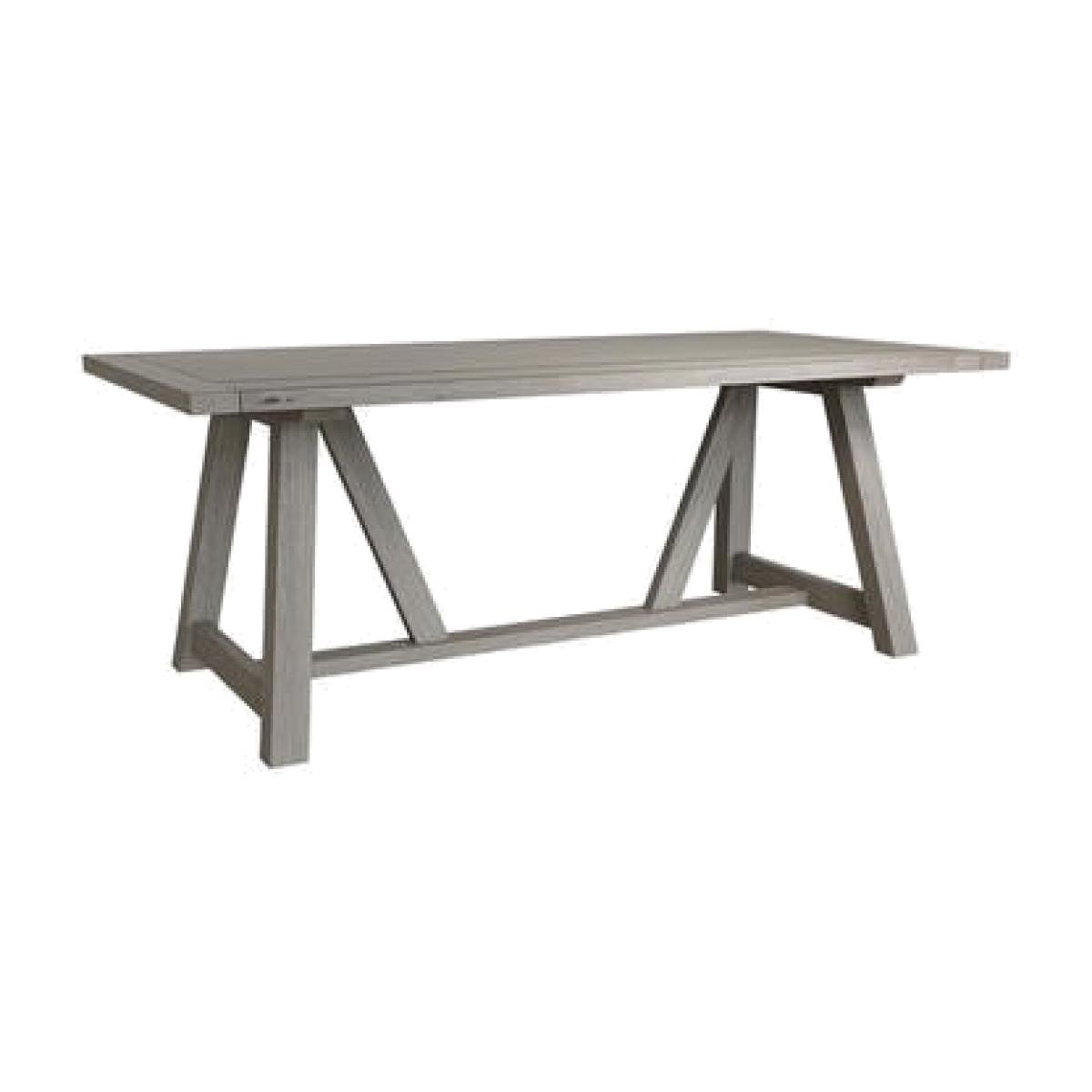 Dimensions H78 x W200 x D100 cm. The Ambleside dining table is bursting with detail part of the Ambleside range which boasts beautiful grey oak tops to the pewter effect handles it brings character and sits well in both traditional and modern spaces. Features. Solid wood frame Grey oak finish. Trestle design Panel effect top. Requires assembly..