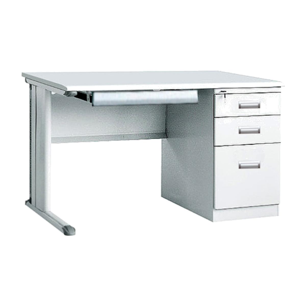 Grey Office Desk With High Desk Pedestal & Lockable Drawers 1200mm W - Light Grey