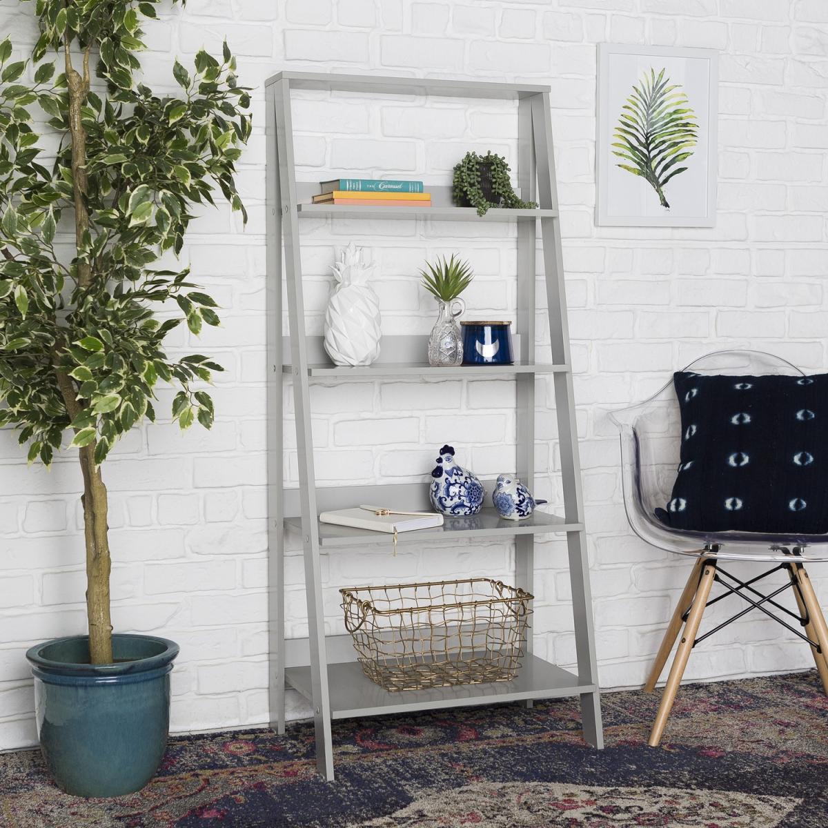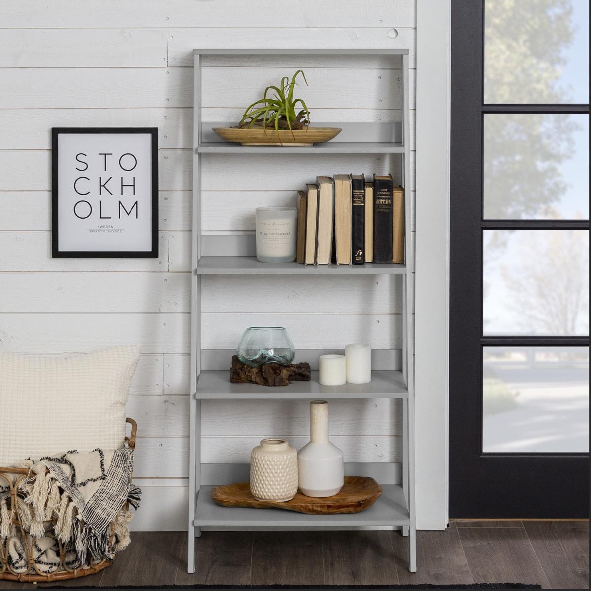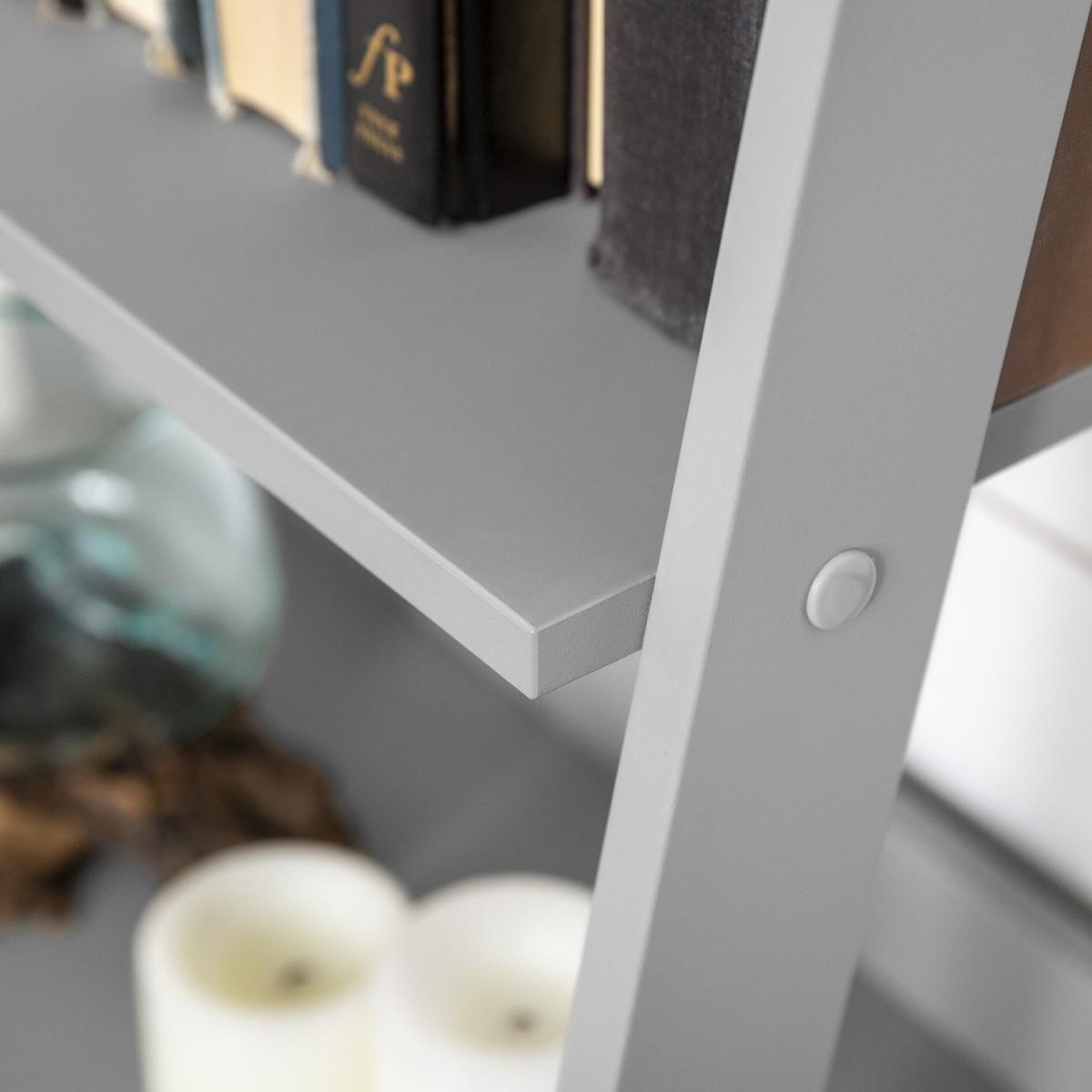 Dimensions H140 x W61 x D33cm Fun and functional this wood ladder bookcase will fulfil all your organisational and decorating needs. Built with durable shelving in a ladder frame this up-to-date unit is made of high-grade MDF that will display any of your media and ornaments wonderfully. The clean and simple lines of this bookshelf make for a modern and transitional appeal with a sense of sophisticated charm that you'll enjoy in your living room hallway or bedroom. Features. In a ladder style for a stylish addition to your home. Made of high-grade MDF and painted in a beautiful finish. With a sturdy construction. The shelves provide ample storage space for your household items. Four shelves are included to decorate for your book collection or for storing room essentials. Colour – Grey Easy assembly with step-by-step instructions..