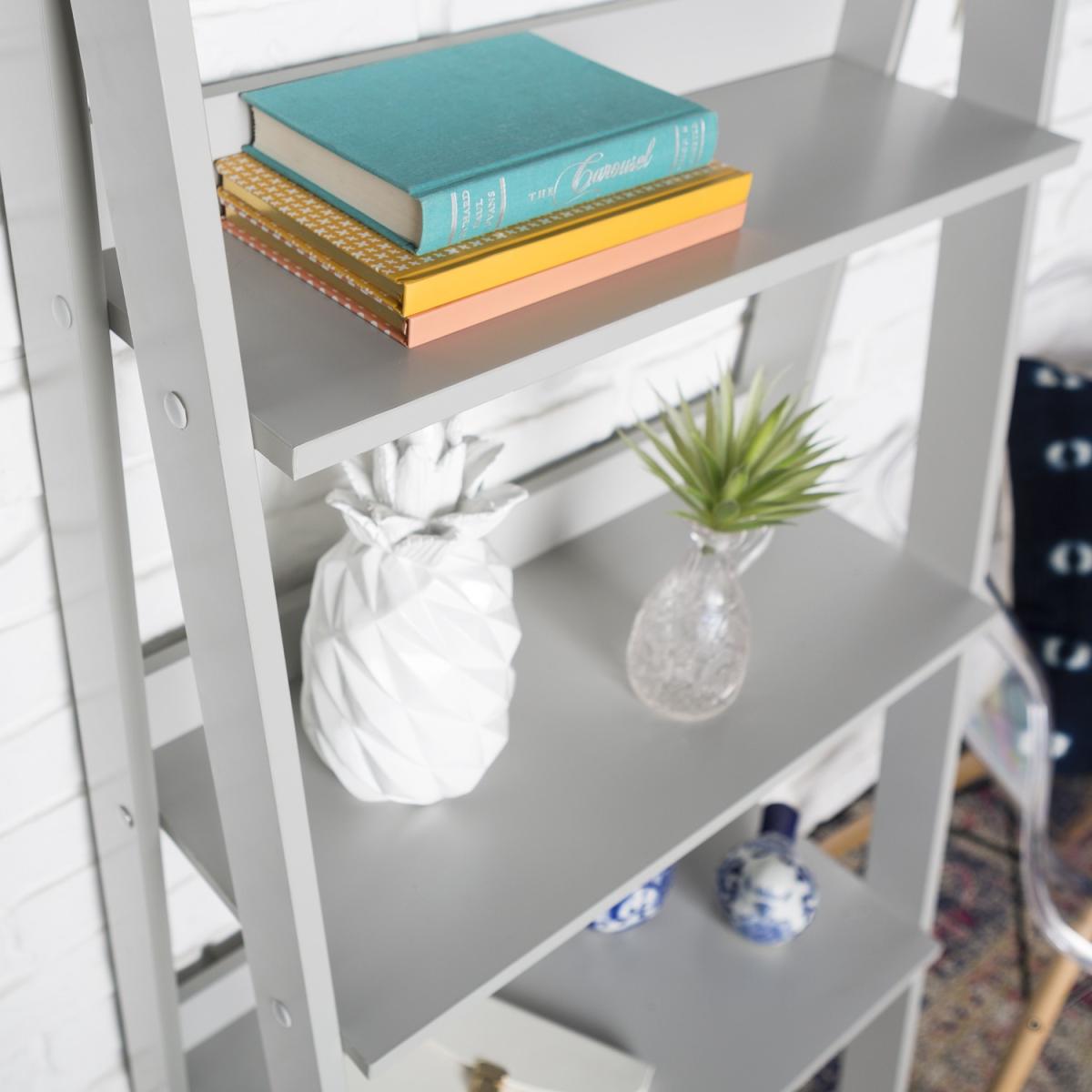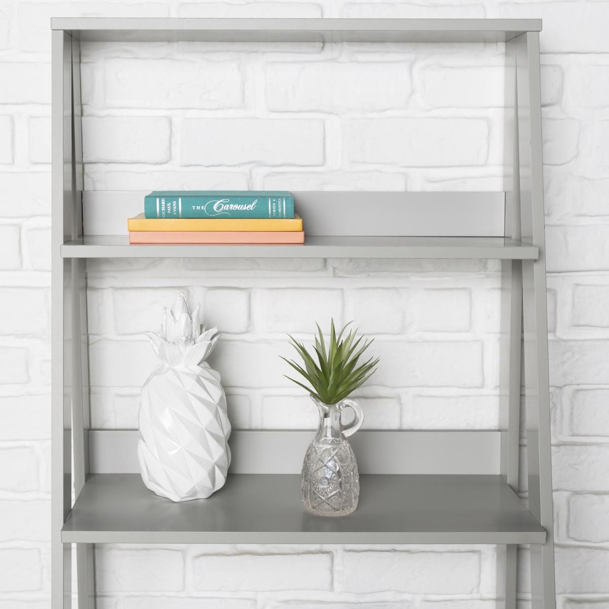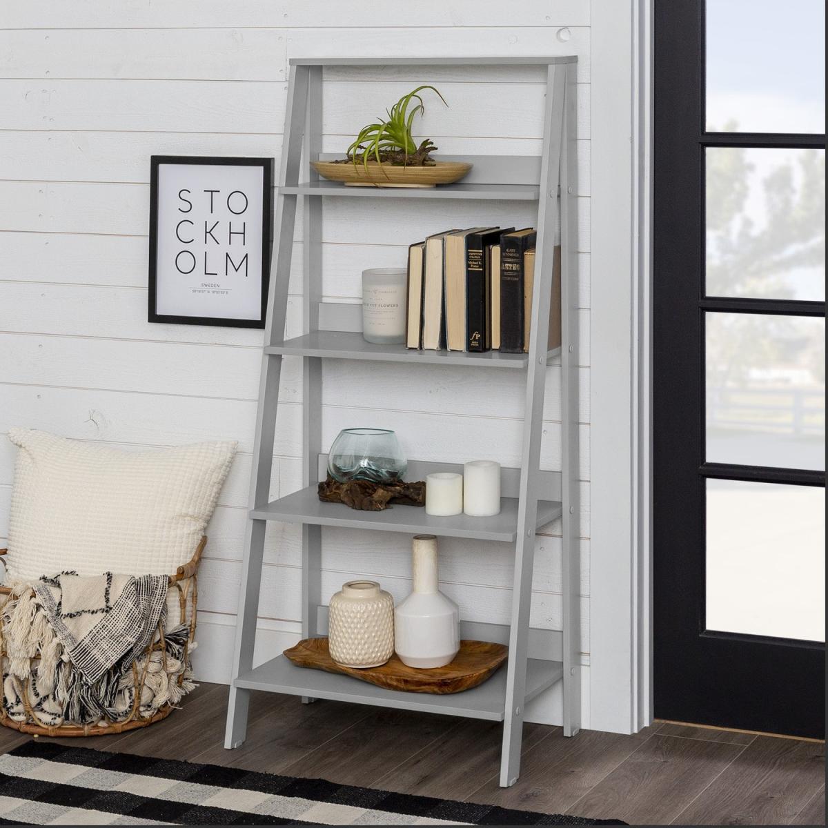 Dimensions H140 x W61 x D33cm Fun and functional this wood ladder bookcase will fulfil all your organisational and decorating needs. Built with durable shelving in a ladder frame this up-to-date unit is made of high-grade MDF that will display any of your media and ornaments wonderfully. The clean and simple lines of this bookshelf make for a modern and transitional appeal with a sense of sophisticated charm that you'll enjoy in your living room hallway or bedroom. Features. In a ladder style for a stylish addition to your home. Made of high-grade MDF and painted in a beautiful finish. With a sturdy construction. The shelves provide ample storage space for your household items. Four shelves are included to decorate for your book collection or for storing room essentials. Colour – Grey Easy assembly with step-by-step instructions..