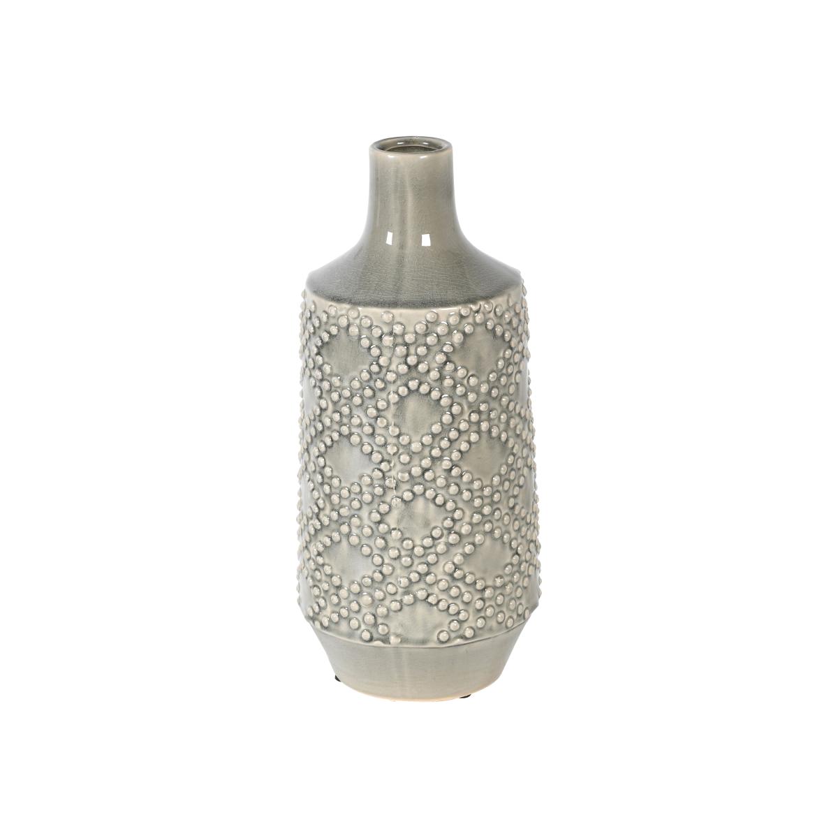 The Grey Patterned Vase is a true statement piece whether stood alone or with a group of other decorative accessories. A geometric pattern is created with the use of raised dots and the crackled glaze provides different shades of grey to all parts of the vase. Due to the earthy tones of the Grey Patterned Vase it would look beautiful with a bunch of dried stems adding warmth and texture to your home.