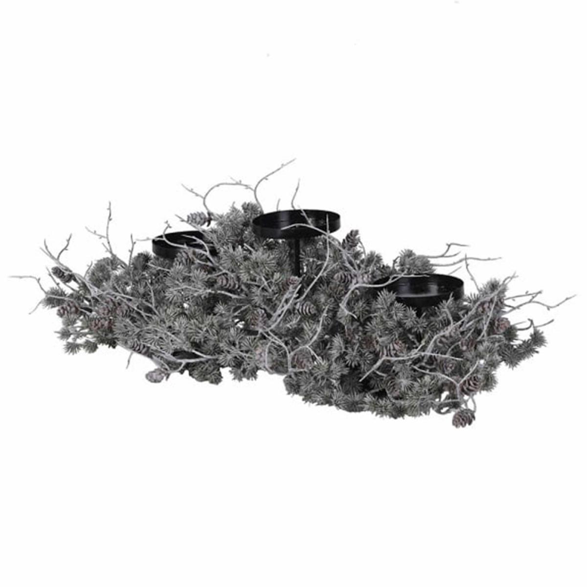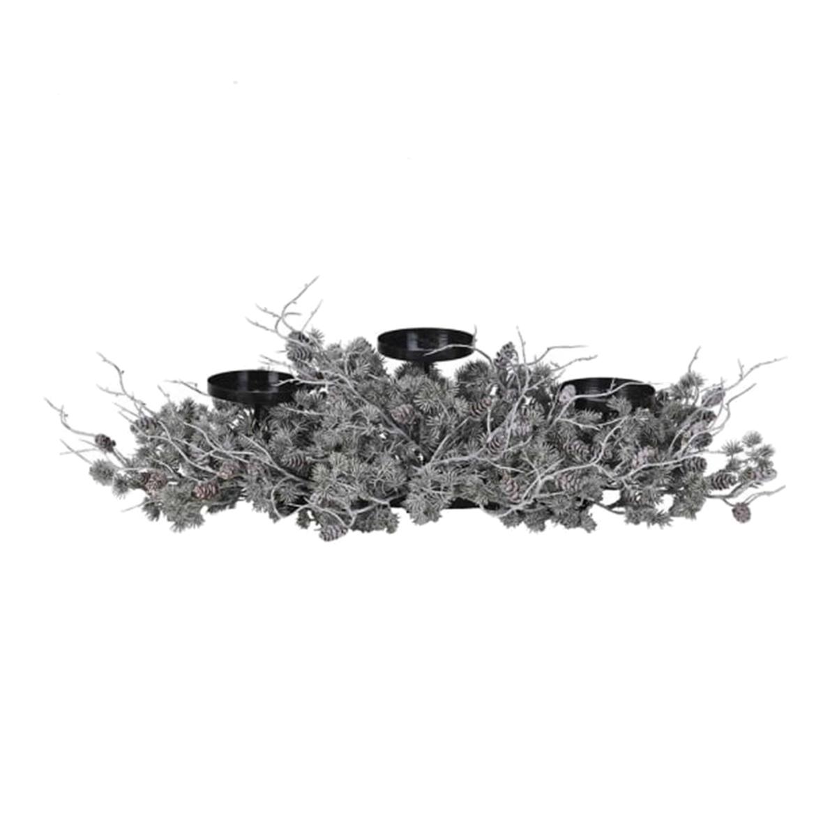 Create a cosy holiday ambiance with the Grey Pinecone Candle Centrepiece. This elegant display features three candle holders nestled among faux greenery, pinecones, and decorative ornaments, all in a sophisticated grey palette. Perfect for adorning dining tables, mantels, or sideboards, it casts a warm, inviting glow while serving as a stylish seasonal centrepiece that enhances any Christmas decor.