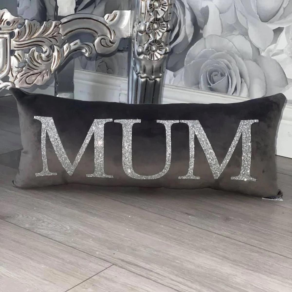 Grey Plush Velvet and Silver Glitter Sparkly Mum Cushion - Grey