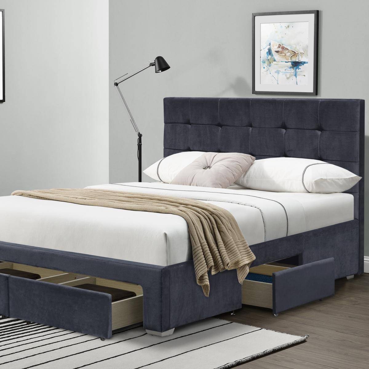 Grey Plush Velvet Upholstered Fabric 4 Drawer Bed Frame - Double