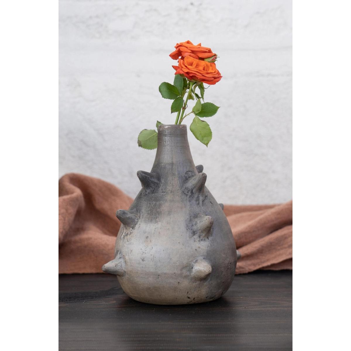 Add warmth and sophistication to your table and shelves with this raw one-of-a-kind pottery vase. This vase's spikes mimic the thorns of the Pochote tree, a sacred tree in Oaxaca. Each piece is sold separately. These pieces of pottery are made of Mexican barro which is clay sourced from local mountain areas of Mexico. Handmade by humans of the Taller Pitao Copycha. Differences in natural finishing techniques and surfaces are to be expected and embraced. Use as a vase or as decor accent.