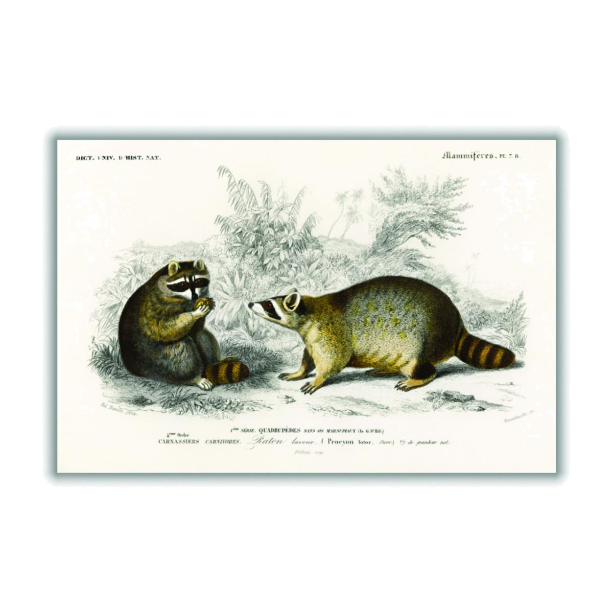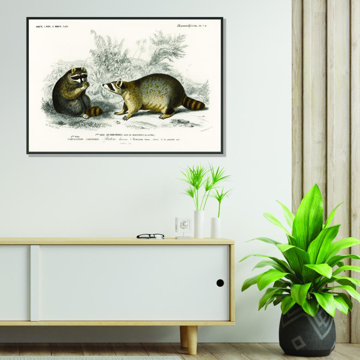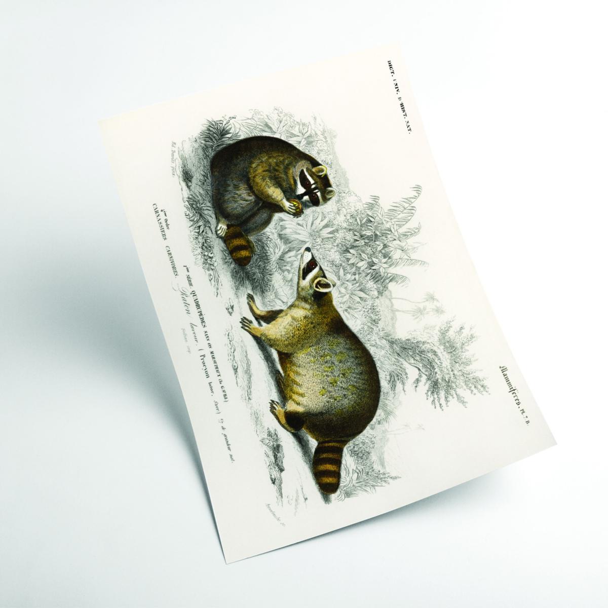 I love the Grey Raccoon print because it offers a charming vintage touch with its detailed illustration, making it a versatile piece for various interiors. It works particularly well in eclectic, boho, or traditional spaces where it can serve as a subtle conversation starter. To style it effectively, consider pairing with natural wood frames or placing it amongst other antique prints or botanical artwork; it lends itself well to both a cosy library nook or a relaxed living room. Practical tips include hanging it at eye level in a grouping of wall art for visual interest or placing it on a shelf with textured accessories to highlight its vintage character. Overall, it adds a touch of nostalgic whimsy while maintaining an understated elegance.