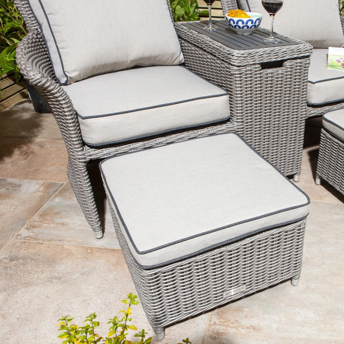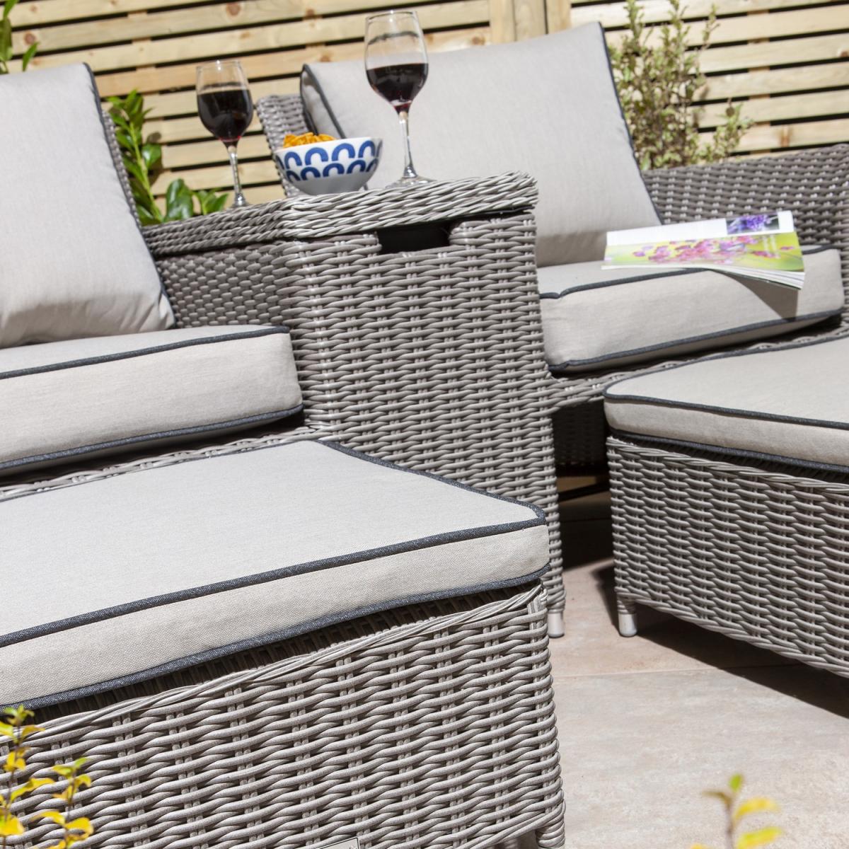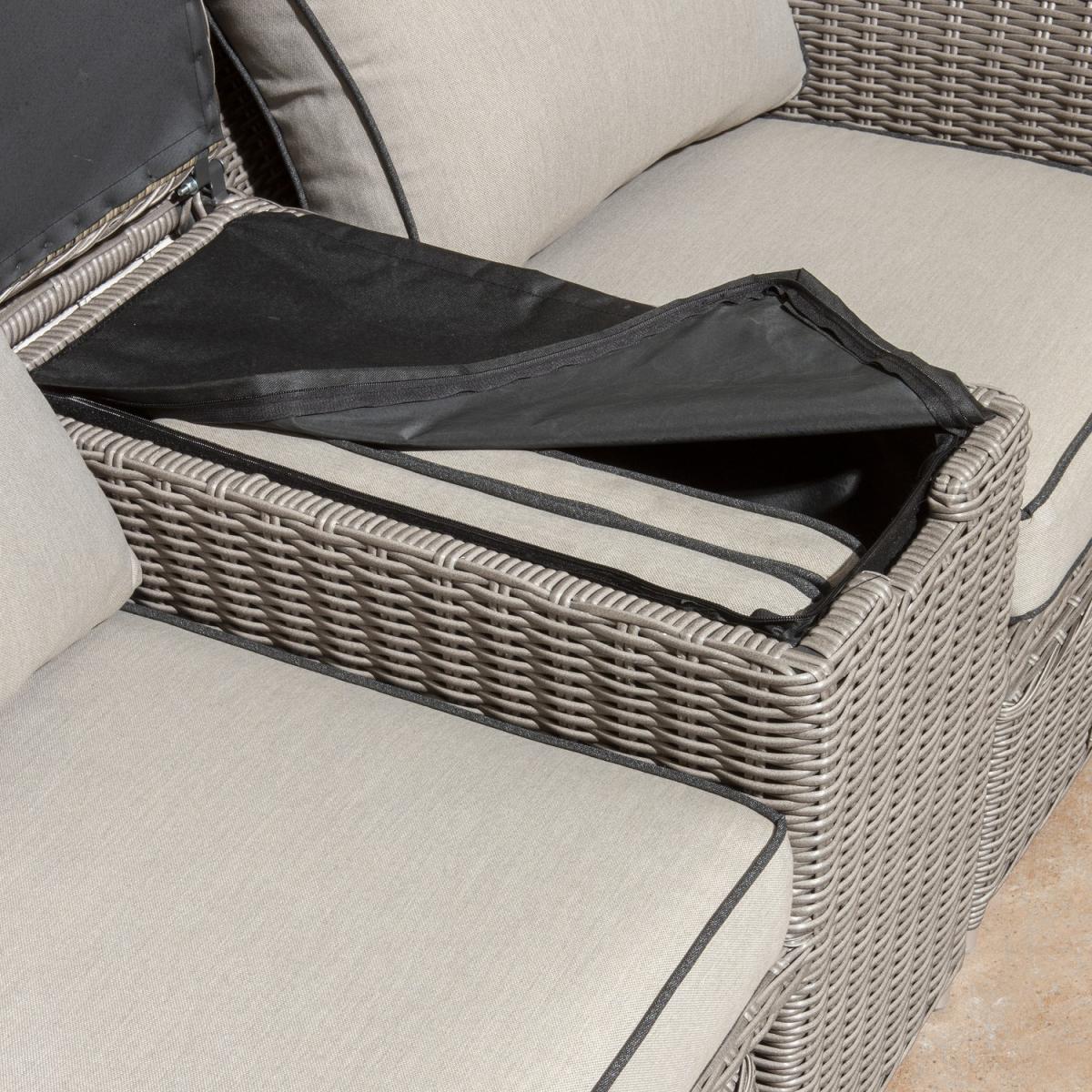 Grey Rattan Garden Love Seats with Storage Footstools-Prestbury