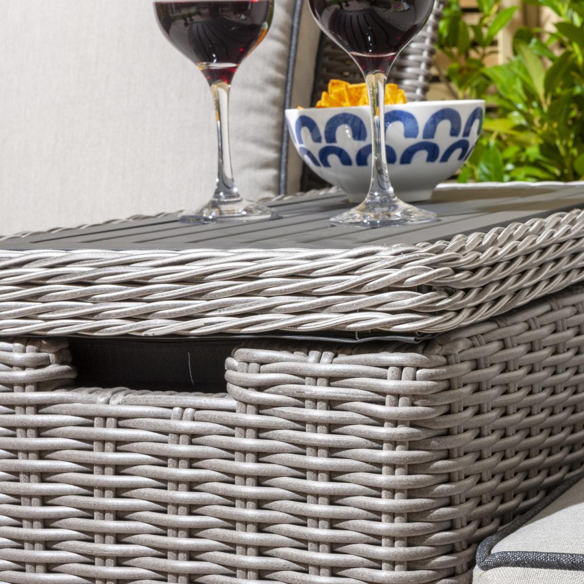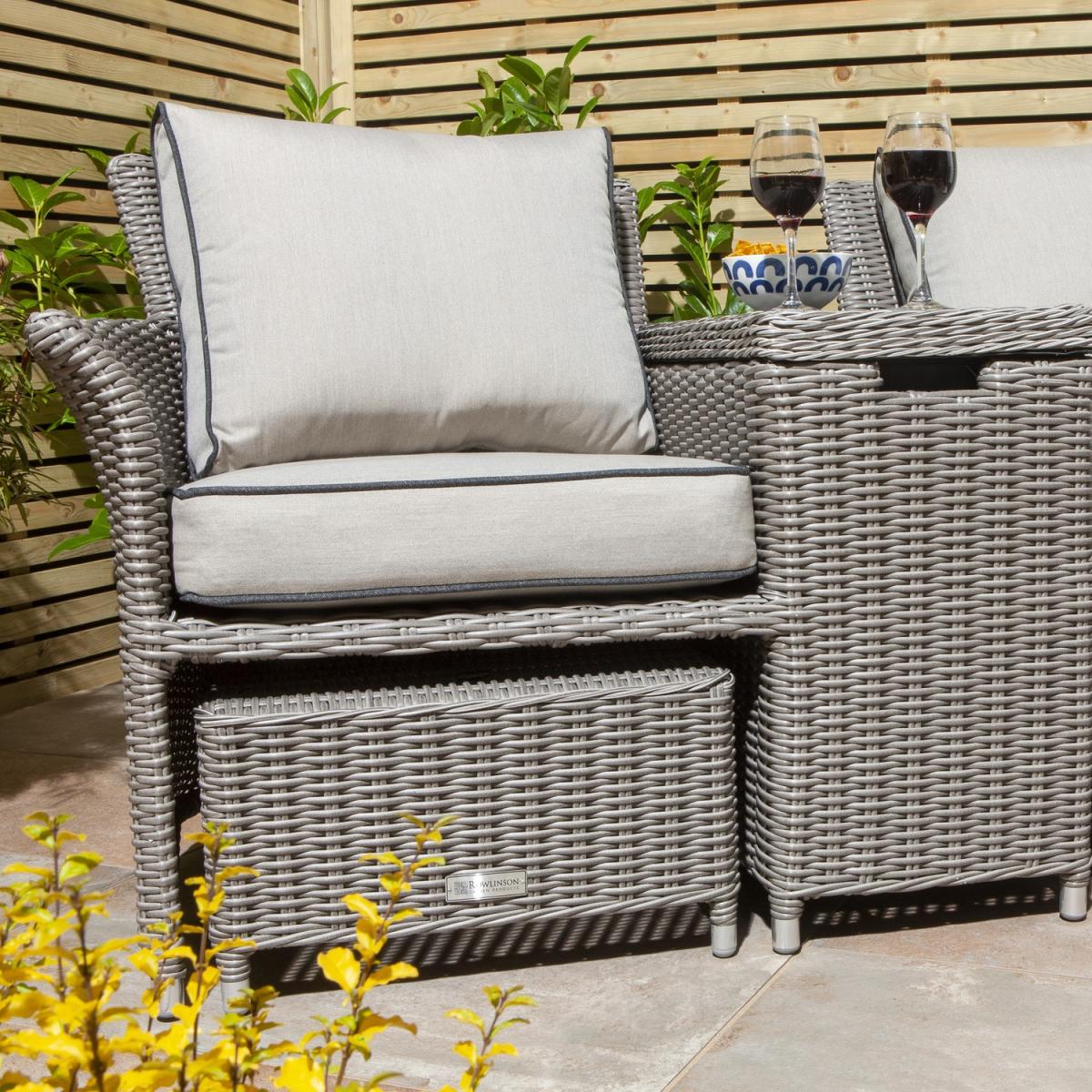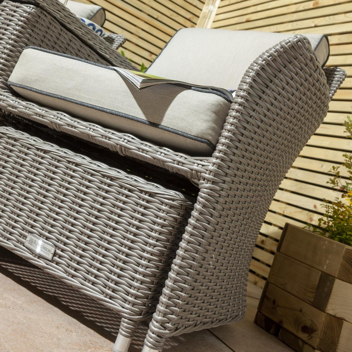Grey Rattan Garden Love Seats with Storage Footstools-Prestbury