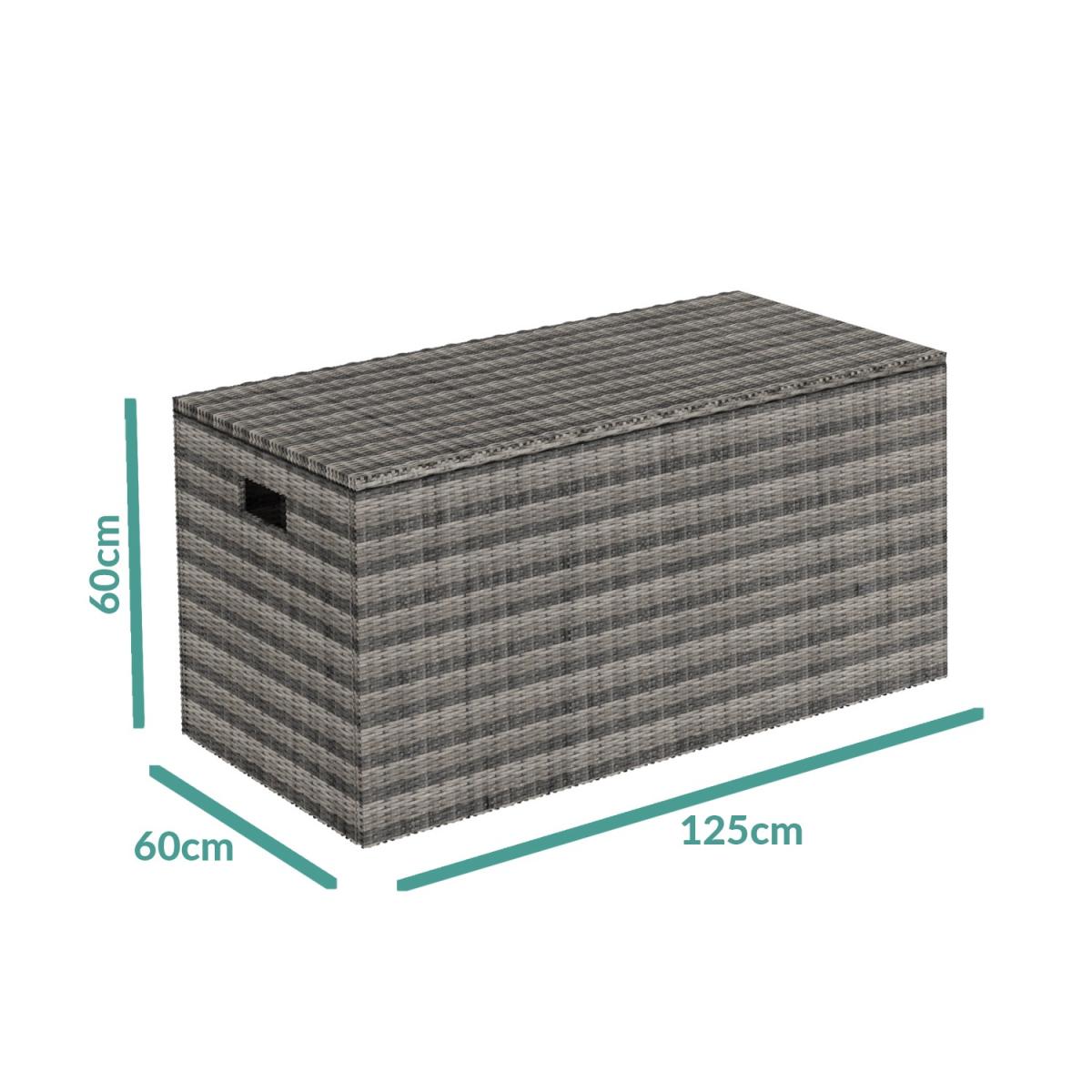 Keep your garden or conservatory clutter-free with this stylish rattan storage box. With ample space inside to hide away cushions from your garden set or even outdoor equipment, you need quick access to. The waterproof lining with a zipper helps keep them dust-free when not in use. Enhance the life of your garden furniture- This product has been designed to be used outdoors. To make the most of your furniture, we recommend that you store it indoors, move it in a sheltered position or protect it by covering it up in bad weather and over the winter period. Why not invest in one of our garden stores to help keep it dry and prevent any mould or mildew from forming.