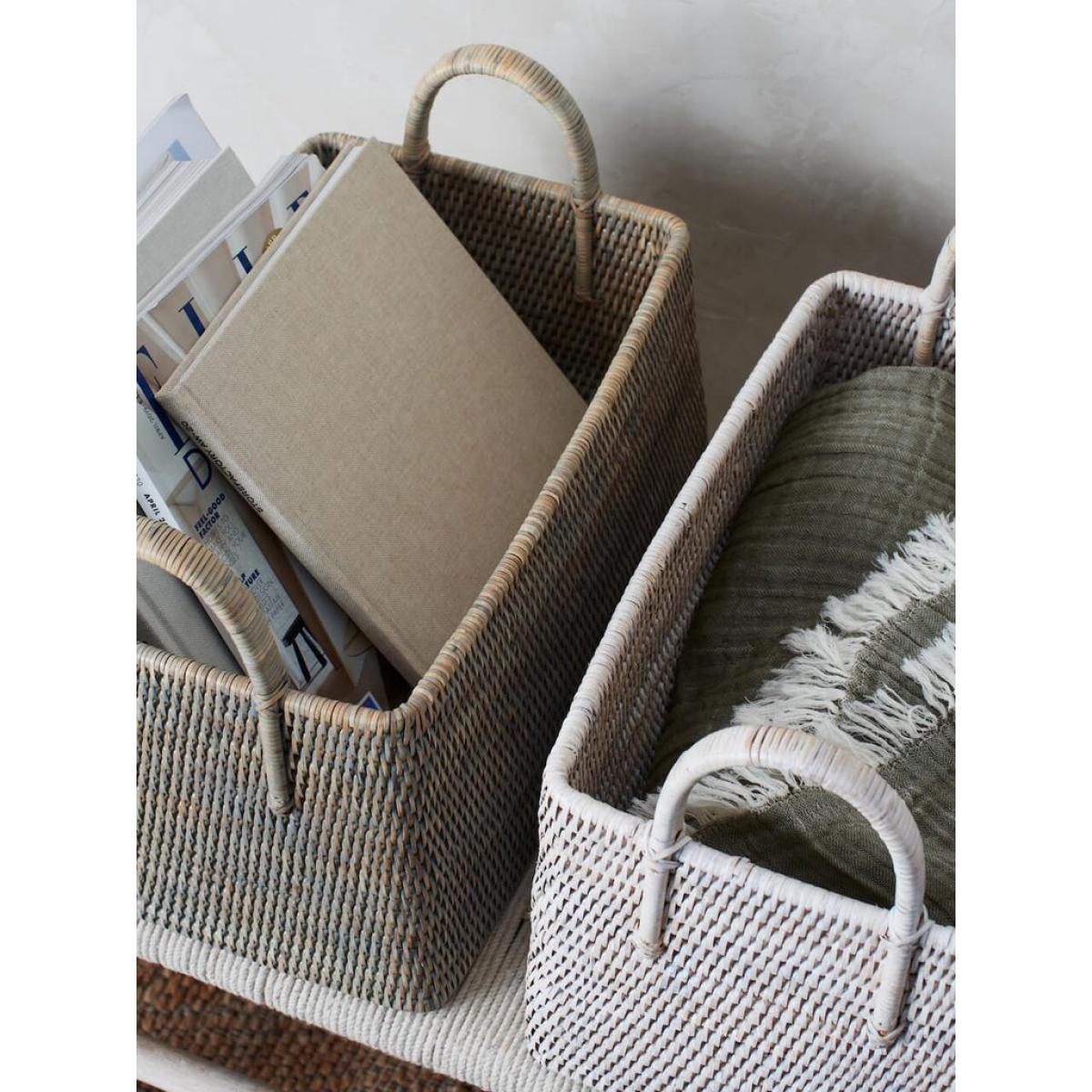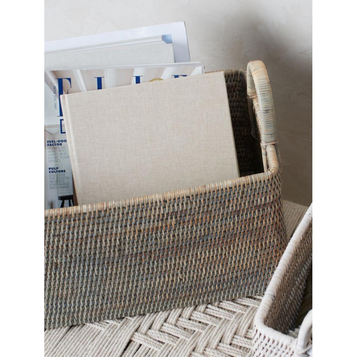 Crafted by artisans, this handmade rattan magazine basket has a wonderful form. With a quality tight weave and modern shape, this is a stylish basket to hide away unsightly magazines or effects. Built to last a lifetime.