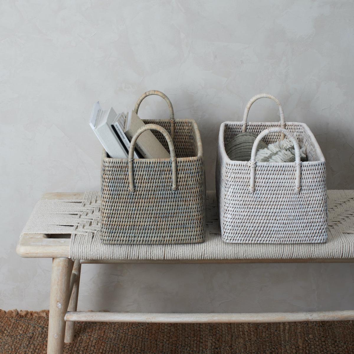 I love the grey rattan basket for its versatility and understated style. It works particularly well in coastal, Scandi, or minimal interiors where its neutral tone complements soft colour palettes. This basket is practical for storing magazines, throw cushions, or other small items, helping to keep spaces tidy without sacrificing aesthetic appeal. When styling, consider grouping it with similar textures like linen or wood for a layered, curated look. Its natural yet contemporary appearance makes it an easy addition to living rooms, bedrooms, or even bathrooms, offering both function and a touch of relaxed charm.