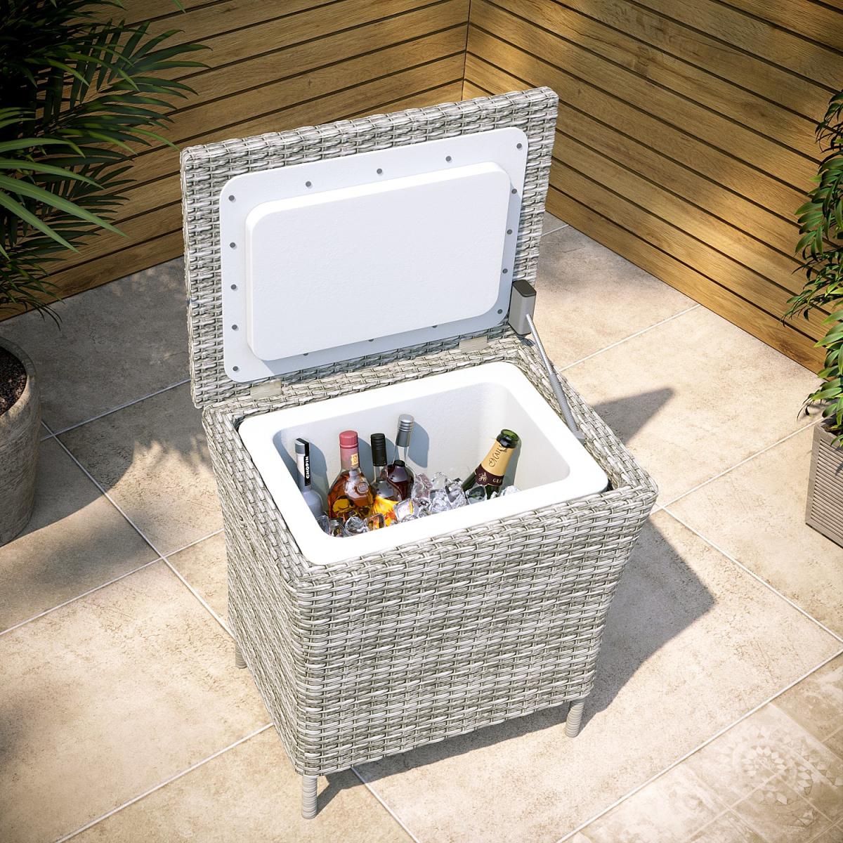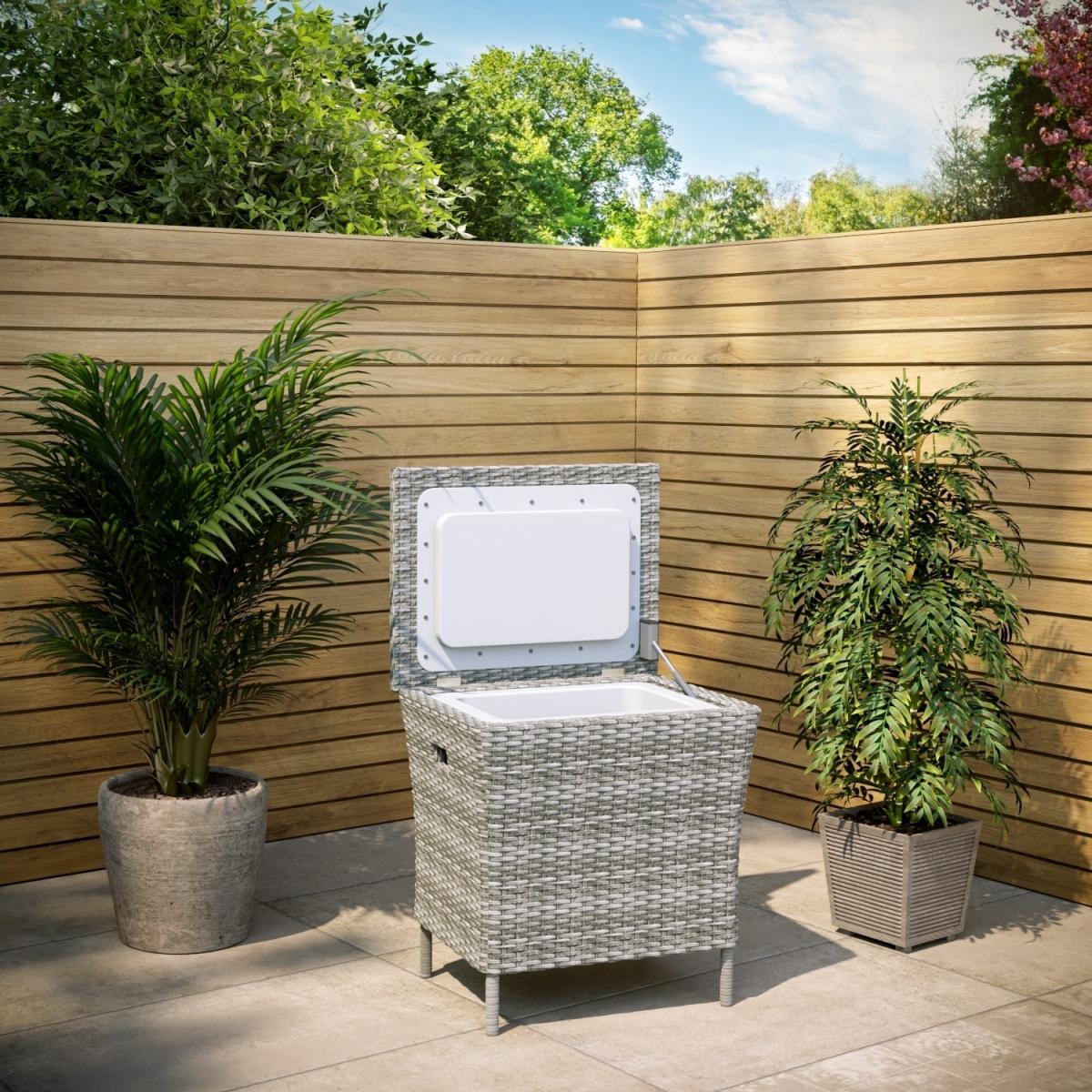 This stylish cooler box makes the perfect addition for entertaining on a summers evening with friends and family. All you need to do is fill it halfway with ice cubes then it'll be ready to use to keep your refreshments cool all day long. It's even durable enough to use as an extra seat. At the end of the day just pull out the inside plug to drain your box so it is ready for next time. Enhance the life of your garden furniture- This product has been designed to be used outdoors. To make the most of your furniture, we recommend that you store it indoors, move it in a sheltered position or protect it by covering it up in bad weather and over the winter period. Why not invest in one of our garden stores.