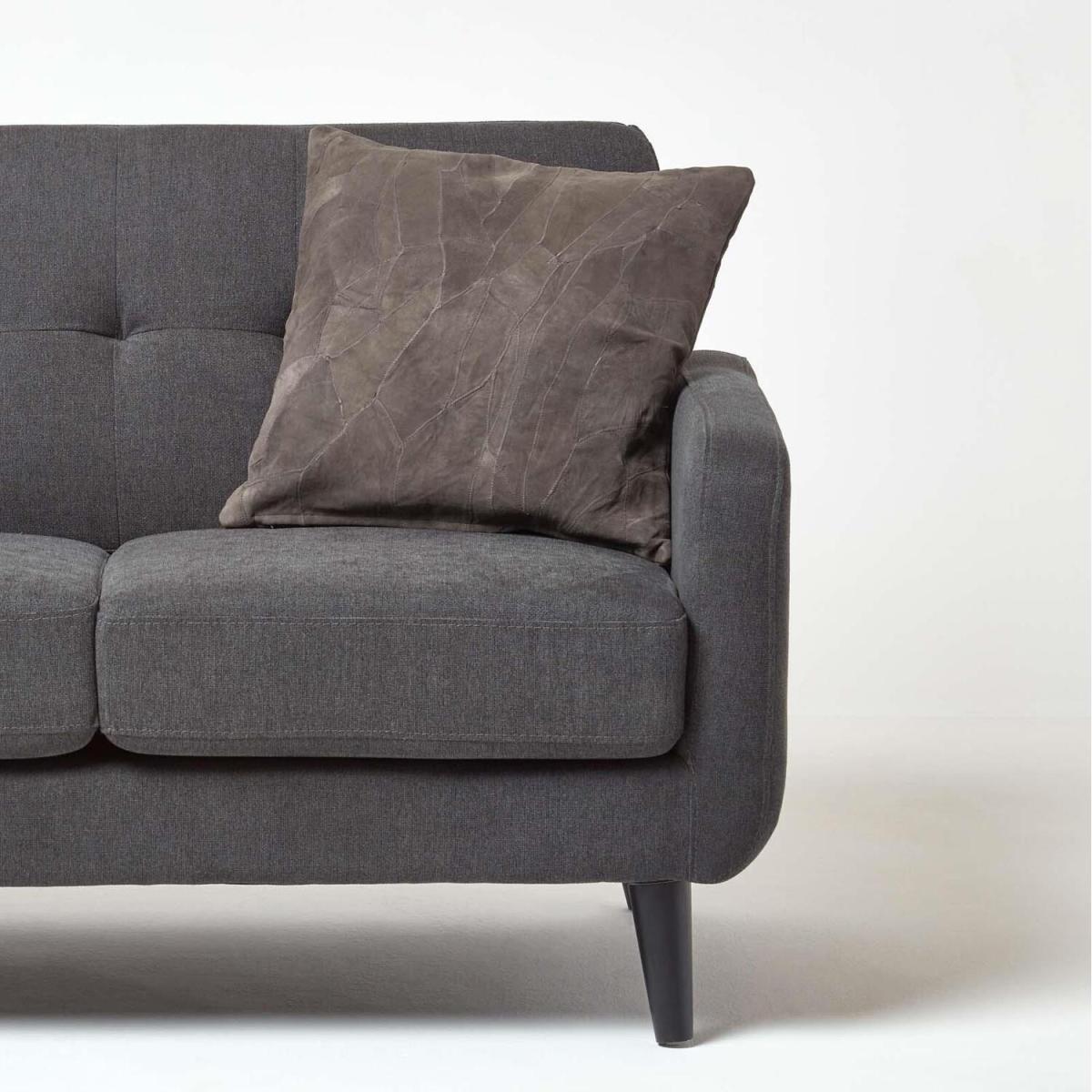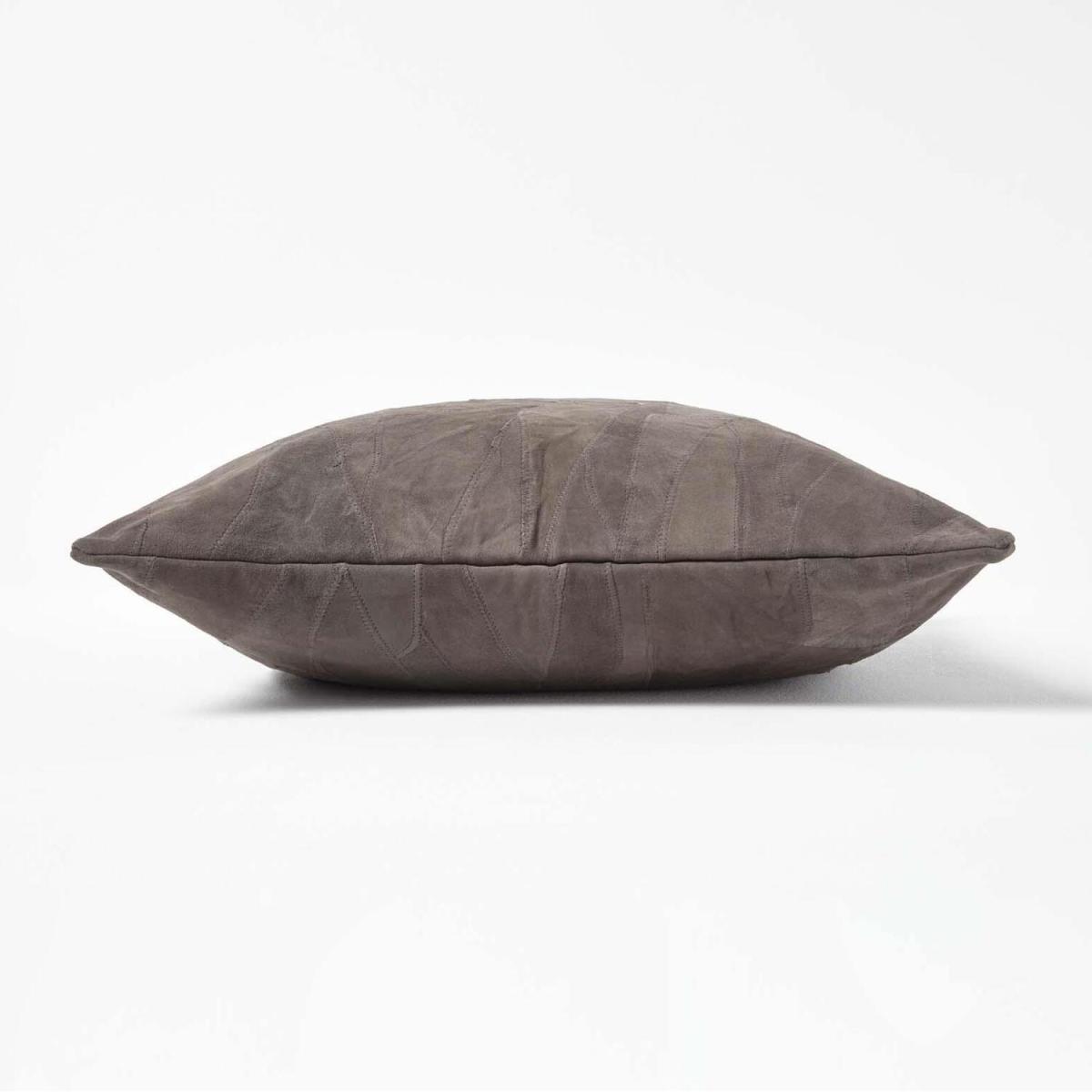 Handcrafted suede leather cushion cover from Homescapes to add design and texture to your home interiors. This cushion cover will easily complement any interior style. A natural fabric, suede feels soft and gentle to the touch, and the cover has been created out of recycled offcuts to reduce waste. This means that each cover is unique, as different off cuts are stitched together to create a patchwork style pattern. Mix and match with other colours from Homescapes suede and leather range such as cream and grey for a contemporary look that will never go out of style. The cover has a zip closure to make filling quick and easy and it has a cotton lining to protect the suede. Comes with a Homescapes feather cushion pad.