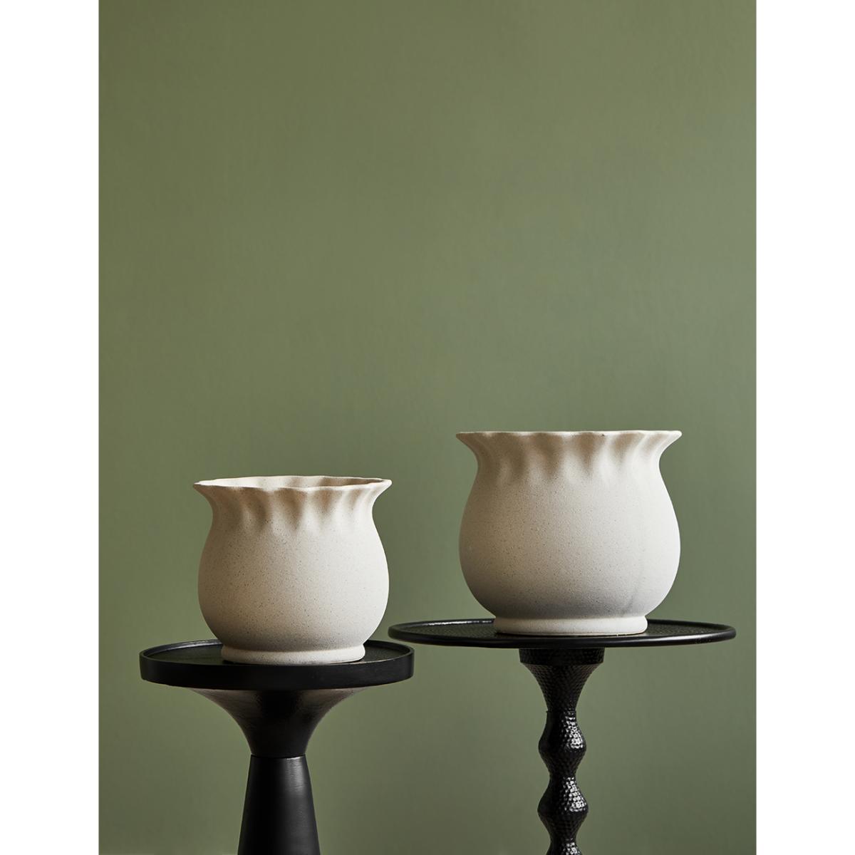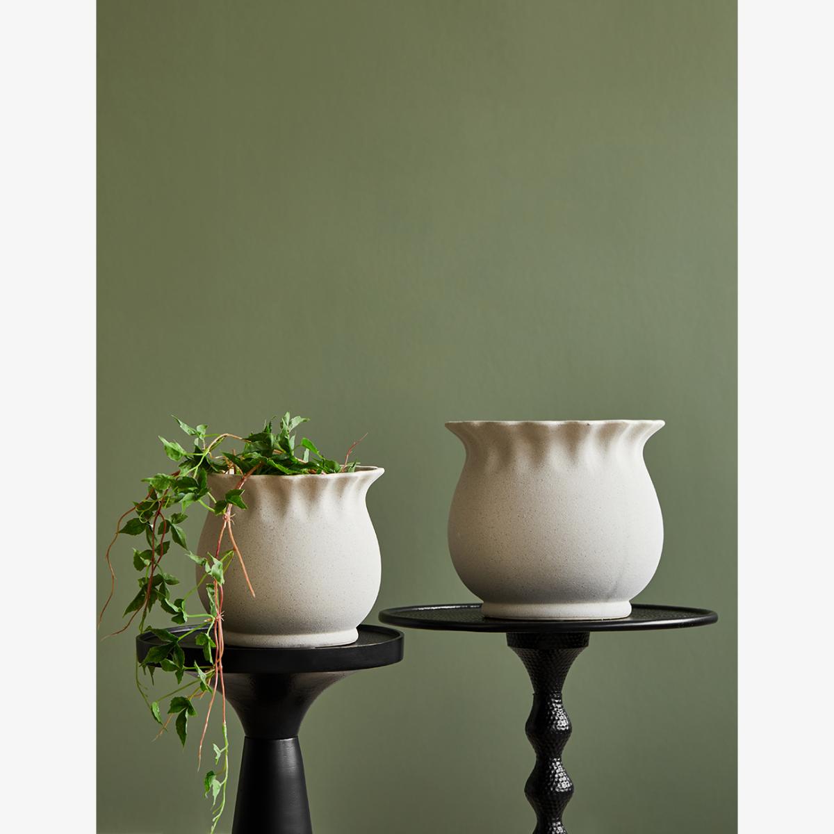 Add a stylish flourish to your window sills, shelves or the top of a sideboard with our beautiful frilly plant pots. Available in two sizes, these pots are perfect for adding personality to your home. They are for indoor use but can also be used outdoors in warm temperatures. Also available in terracotta.