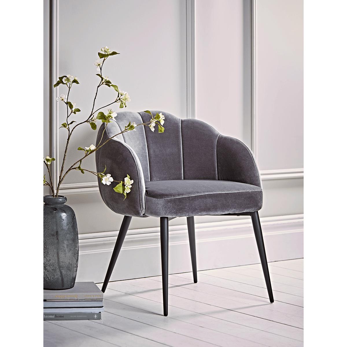 I love the grey scalloped velvet chair for its classic yet contemporary appeal. Its soft, plush velvet adds a touch of luxury, making it perfect for both formal dining rooms and more relaxed, eclectic interiors. The scalloped back detail brings subtle visual interest without overwhelming the space, making it versatile for various styles-from modern minimalism to vintage-inspired schemes. Practical tips would include pairing it with sleek, understated tables to let its texture stand out or mixing with other velvet or fabric pieces for a layered look. Additionally, its neutral grey makes it easy to incorporate into colour schemes, and the velvet finish adds a tactile element that invites guests to sit comfortably.