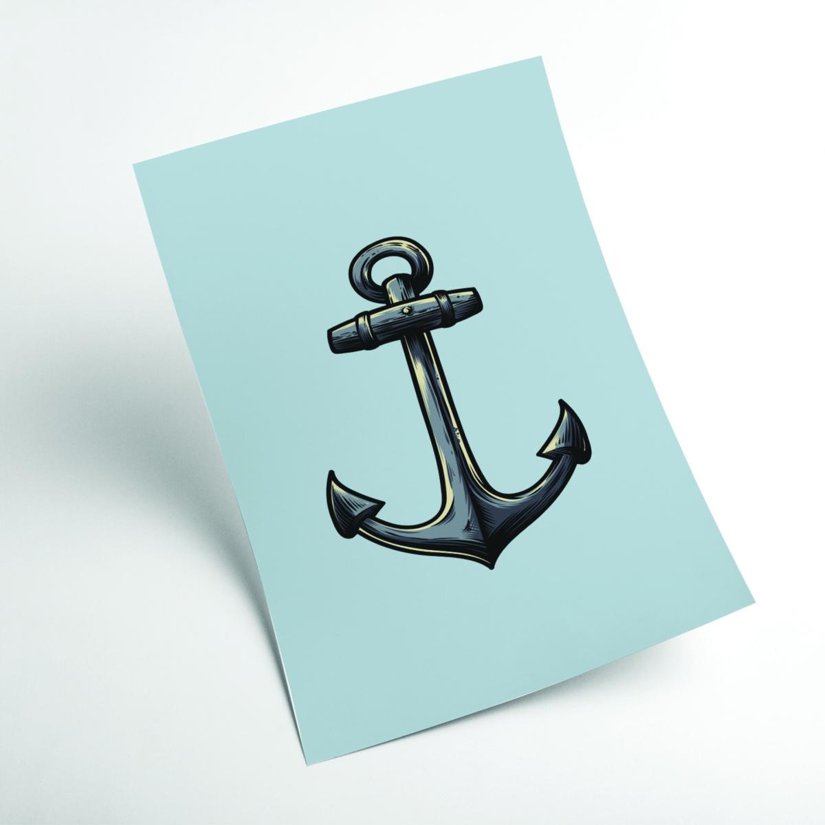 I love this anchor print for its bold, nautical aesthetic and versatile colour palette. It works beautifully in contemporary coastal interiors or industrial spaces, bringing a sense of calm and maritime charm. To style it effectively, consider pairing it with natural textures like rattan or reclaimed wood, and keep surrounding colours neutral or muted to allow the print to stand out. It’s perfect as a focal point above a sofa or bed, or as part of a gallery wall in a hallway. For added interest, you could layer with other maritime or monochrome artworks, making this print a statement piece that’s both stylish and practical.