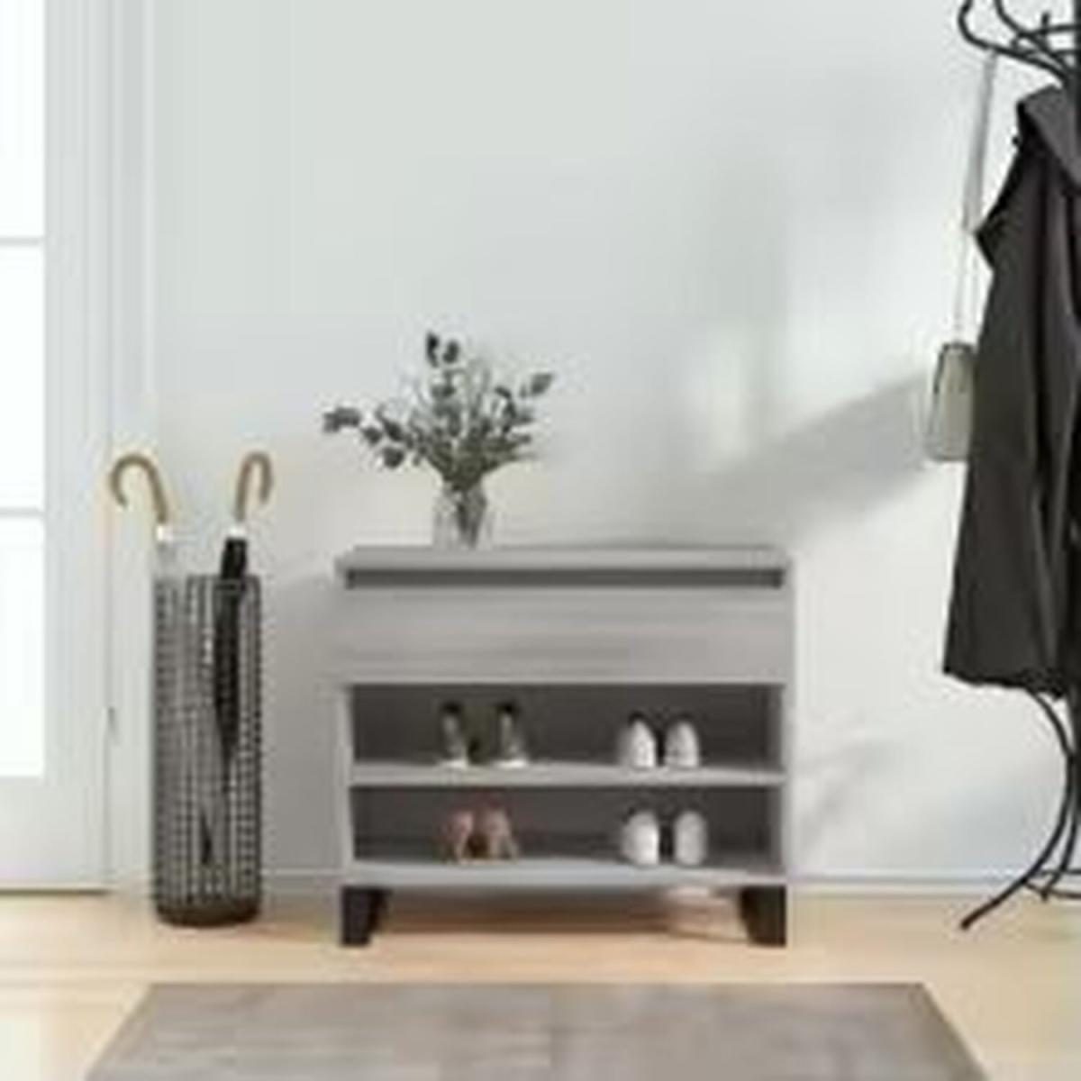 Grey Shoe Cabinet 70x36x60cm Wooden Storage Organiser - Grey