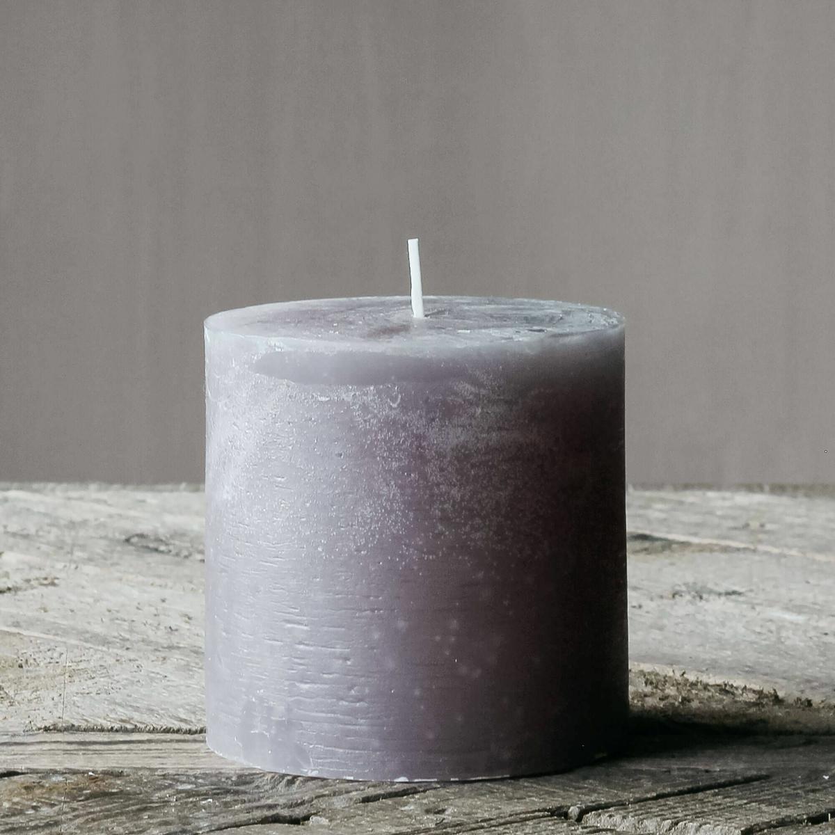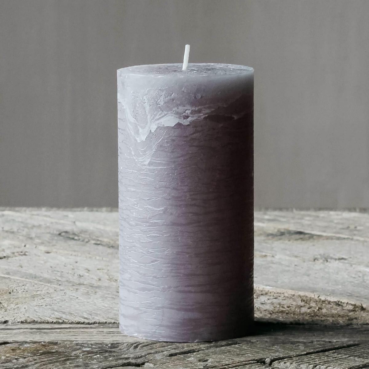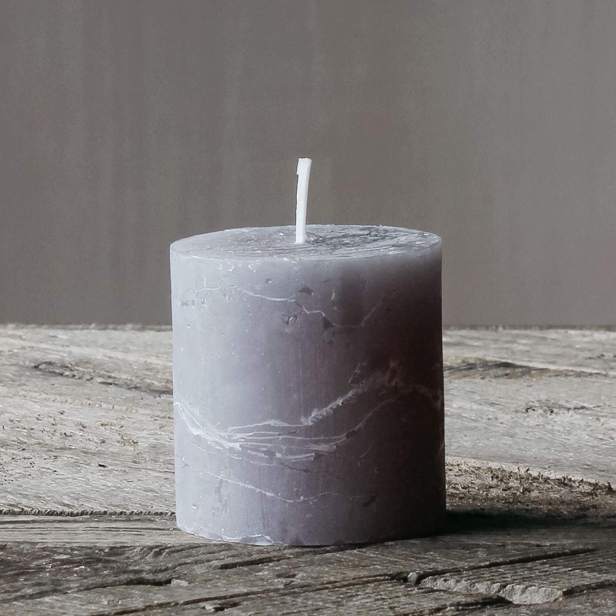 A collection of rustic pillar candles in a cool grey colour. Cluster them together on your dining table or mantlepiece for a contemporary Scandi-inspired look.